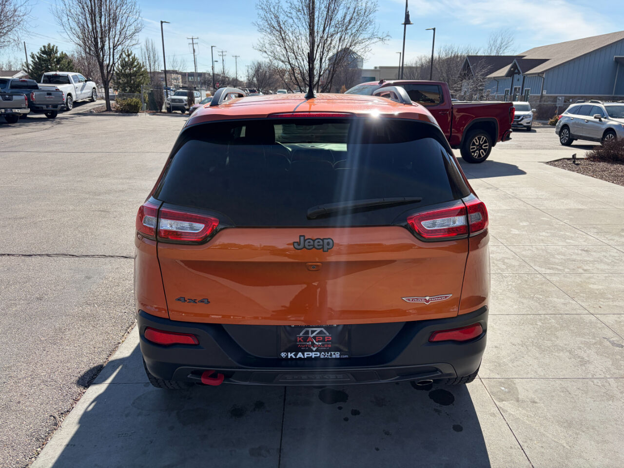 FREE 3 MONTH/3,000 MILE WARRANTY AT LIST PRICEFeel the excitement and adventure that comes with driving this vibrant Orange 2015 Jeep Cherokee! This rugged beauty is the perfect companion for off-road expeditions, thanks to its Off Road Suspension and Automatic Full-Time Four-Wheel Drive. With a sleek design featuring Black Bodyside Cladding and accent color exterior mirrors, this Jeep is not only capable but also stylish on the road. Take on any terrain with confidence, knowing that this Cherokee is equipped with a Driver Selectable Rear Locking Differential and 4 Skid Plates for added protection. The 160 Amp Alternator and Engine Oil Cooler ensure optimal performance, while the Towing Equipment makes it easy to bring along your gear for the journey. Step inside the spacious cabin and enjoy modern conveniences like Bluetooth connectivity and a 8.4 Touch Screen Display. With comfortable seating for five and ample storage space, this Cherokee is perfect for both daily commutes and weekend getaways. Plus, rest assured with the included Carfax report for added peace of mind.Get ready to hit the road in style and comfort with this eye-catching Orange 2015 Jeep Cherokee! PLEASE VERIFY ALL OPTIONS AND FEATURES WITH DEALER. FOR MORE INFORMATION GIVE US A CALL TODAY 801-776-6867 OR YOU CAN TEXT US AT 801-941-0283 OR 801-941-2500.