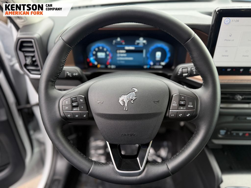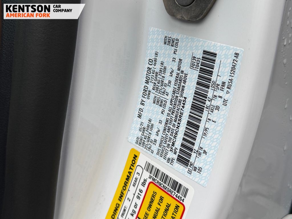 Equipment Group 300A, 4-Wheel Disc Brakes, 6 Speakers, ABS brakes, Air Conditioning, Alloy wheels, AM/FM radio: SiriusXM, AM/FM Stereo, Auto High-beam Headlights, Auto-dimming Rear-View mirror, Automatic temperature control, Brake assist, Compass, Delay-off headlights, Driver door bin, Driver vanity mirror, Dual front impact airbags, Dual front side impact airbags, Electronic Stability Control, Emergency communication system: SYNC 4 911 Assist, Four wheel independent suspension, Front anti-roll bar, Front Bucket Seats, Front Center Armrest, Front Driver/Passenger Seat Back Map Pockets, Front dual zone A/C, Front fog lights, Front License Plate Bracket, Front reading lights, Fully automatic headlights, Garage door transmitter, Heated door mirrors, Heated front seats, Heated steering wheel, Illuminated entry, Knee airbag, Low tire pressure warning, Memory seat, Occupant sensing airbag, Outside temperature display, Overhead airbag, Overhead console, Panic alarm, Passenger door bin, Passenger vanity mirror, Power door mirrors, Power driver seat, Power passenger seat, Power steering, Power windows, Premium Trimmed Front Bucket Seats w/Ebony/Roast, Radio data system, Rain sensing wipers, Rear anti-roll bar, Rear Parking Sensors, Rear reading lights, Rear seat center armrest, Rear window defroster, Rear window wiper, Remote keyless entry, Security system, SiriusXM, Speed control, Speed-sensing steering, Speed-Sensitive Wipers, Split folding rear seat, Steering wheel mounted audio controls, SYNC 4 w/Enhanced Voice Recognition, Tachometer, Telescoping steering wheel, Tilt steering wheel, Traction control, Trip computer, Variably intermittent wipers, and Wheels: 18'' Ebony Black-Painted Aluminum.