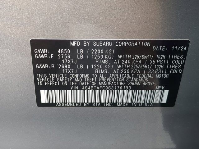 TITANIUM GRAY CLOTH UPHOLSTERY -inc: silver or ivory stitching,BSD & RCTA & KEYLESS ACCESS & PUSH BUTTON START -inc: Blind Spot Detection (BSD) system off switch exterior power mirrors: BSD/RCTA detection indicator rear radar detection sensors and lane change assist Hands-Free Power Rear Gate automatic close and height memory Power Moonroof tilt up and internal retracting w/auto-open/close and laminated UV dark tinted glass Rear Cross Traffic Alert (RCTA) audible vehicle detection warning Keyless Access w/Push Button Start PIN code access laser cut master key remote transmitter w/removable key illuminated engine start/stop switch shift lever park engagement display and audible warning starter override protection driver and front passenger door unlock/lock sensor rear gate unlock sensor and rear gate lock button Radio: Subaru 11.6 Multimedia System w/Navigation AM/FM stereo HD Radio valet mode multi-touch gesture high resolution display screen voice activated controls and navigation Bluetooth audio streaming and hands-f,ICE SILVER METALLIC,All Wheel Drive,Power Steering,ABS,4-Wheel Disc Brakes,Brake Assist,Brake Actuated Limited Slip Differential,Aluminum Wheels,Tires - Front All-Season,Tires - Rear All-Season,Temporary Spare Tire,Heated Mirrors,Power Mirror(s),Integrated Turn Signal Mirrors,Rear Defrost,Privacy Glass,Intermittent Wipers,Variable Speed Intermittent Wipers,Rear Spoiler,Power Door Locks,Luggage Rack,Daytime Running Lights,Automatic Headlights,Headlights-Auto-Leveling,LED Headlights,Fog Lamps,Automatic Highbeams,AM/FM Stereo,Satellite Radio,MP3 Capability,Bluetooth Connection,Telematics,Auxiliary Audio Input,HD Radio,WiFi Hotspot,Smart Device Integration,Requires Subscription,MP3 Capability,Steering Wheel Audio Controls,Bluetooth Connection,Power Driver Seat,Bucket Seats,Heated Front Seat(s),Driver Adjustable Lumbar,Pass-Through Rear Seat,Rear Bench Seat,Adjustable Steering Wheel,Trip Computer,Power Windows,WiFi Hotspot,Leather Steering Wheel,Keyless Entry,Power Door Locks,Cruise Control,Adaptive Cruise Control,Climate Control,Multi-Zone A/C,A/C,Cloth Seats,Driver Vanity Mirror,Passenger Vanity Mirror,Driver Illuminated Vanity Mirror,Passenger Illuminated Visor Mirror,Floor Mats,Cargo Shade,Smart Device Integration,Power Windows,Power Door Locks,Trip Computer,Security System,Immobilizer,Cruise Control Steering Assist,Traction Control,Stability Control,Traction Control,Front Side Air Bag,Lane Departure Warning,Lane Keeping Assist,Lane Departure Warning,Front Collision Mitigation,Driver Monitoring,Telematics,Requires Subscription,Tire Pressure Monitor,Driver Air Bag,Passenger Air Bag,Front Head Air Bag,Rear Head Air Bag,Passenger Air Bag Sensor,Knee Air Bag,Child Safety Locks,Driver Restriction Features,Back-Up Camera