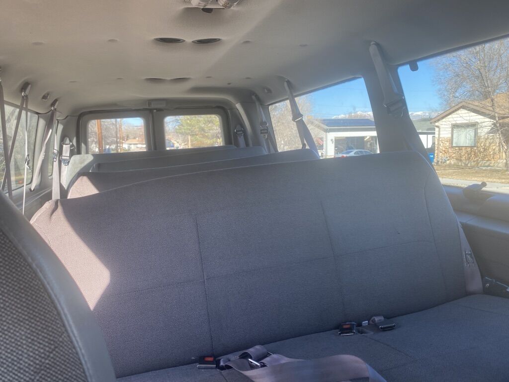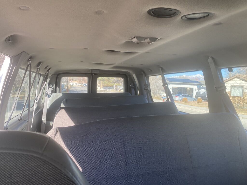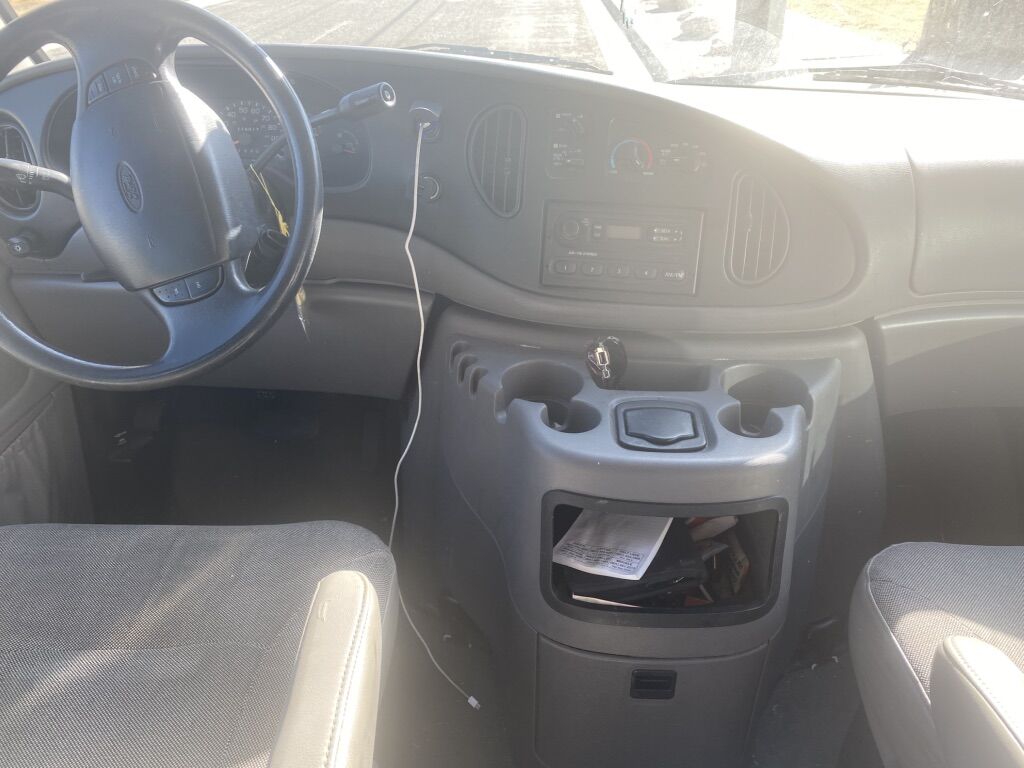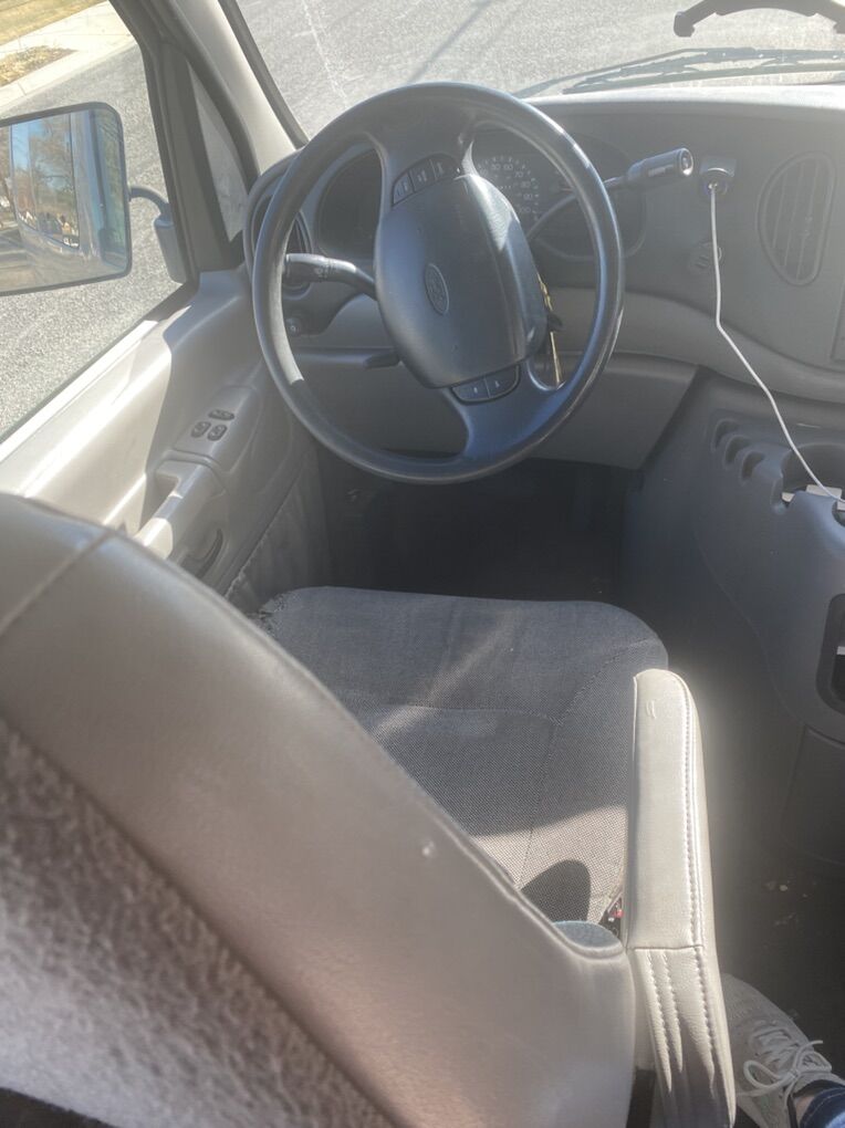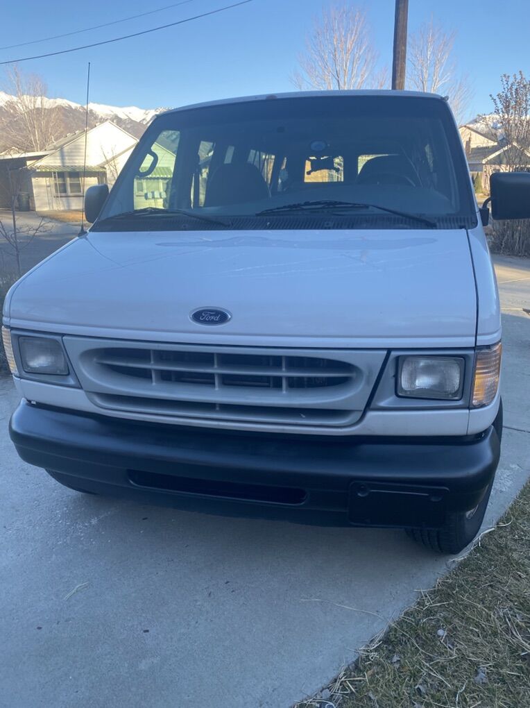 Ford Econoline 350 v8 van with 4 rows seats 15 been great to us and drives good. Does have some rust that’s around the bottom edges but tires are great , radio , heat and ac work great, works great.