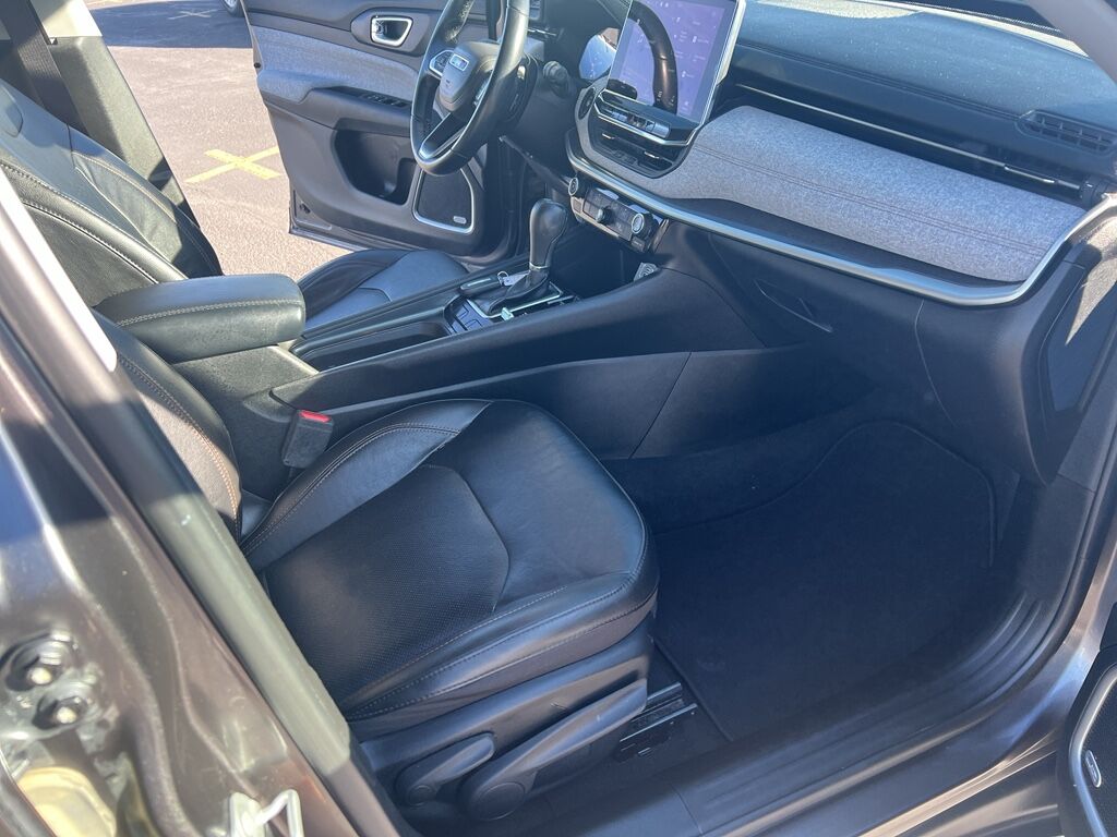 Sun and Sound Group: Premium Alpine Speaker System; Power Front/fixed Rear Full Sunroof,Quick Order Package 2GL,Granite Crystal Met CC,Blind Spot Detection,Keyfob remote start,Heated steering wheel,Uconnect w/Bluetooth handsfree wireless device connectivity,Apple CarPlay/Android Auto smart device wireless mirroring,Heated driver and front passenger seats,First and second-row sliding and tilting glass sunroof with express open/close activation sunshade,Leather front seat upholstery,Driver seat with 8-way directional controls,Front passenger seat with 6-way directional controls,2 USB ports,10.1 inch primary display,Full Speed Forward Collision Warning Plus,Pedestrian/Cyclist Emergency Braking,ParkView rear mounted camera,Active Lane Management,Brake assist system,Cruise control with steering wheel mounted controls,Primary monitor touchscreen,Cross Path Detection collision warning,Driver seat power reclining, lumbar support, cushion tilt, fore/aft control and height adjustable control,Jeep Active Drive automatic full-time 4WD,MultiAir2 Tigershark 2.4L I-4 variable valve control, regular unleaded, engine with 177HP,MultiAir2 Tigershark 2.4L I-4,Smart key with hands-free access and push button start,Smart device remote start,Push-button,Bluetooth wireless audio streaming,Auto high-beam headlights,Immobilizer,SiriusXM Guardian vehicle tracker,Alpine speakers,SiriusXM Guardian vehicle integrated emergency SOS system,UConnect 5 radio,Multi-level cargo floor,Uconnect external memory control,Digital/analog instrumentation display,Configurable instrumentation gauges,Electronic stability control system with anti-roll,Hill start assist,Leather rear seat upholstery,Front cornering lights,Front fog lights,Leather and metal-look steering wheel,Manual rear child safety door locks,Mobile app access,Roof rails,Heated driver and passenger side door mirrors,Gauge cluster display size: 7.00,Manual tilting steering wheel
