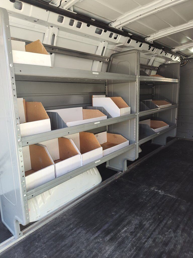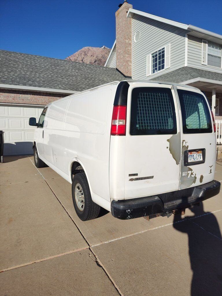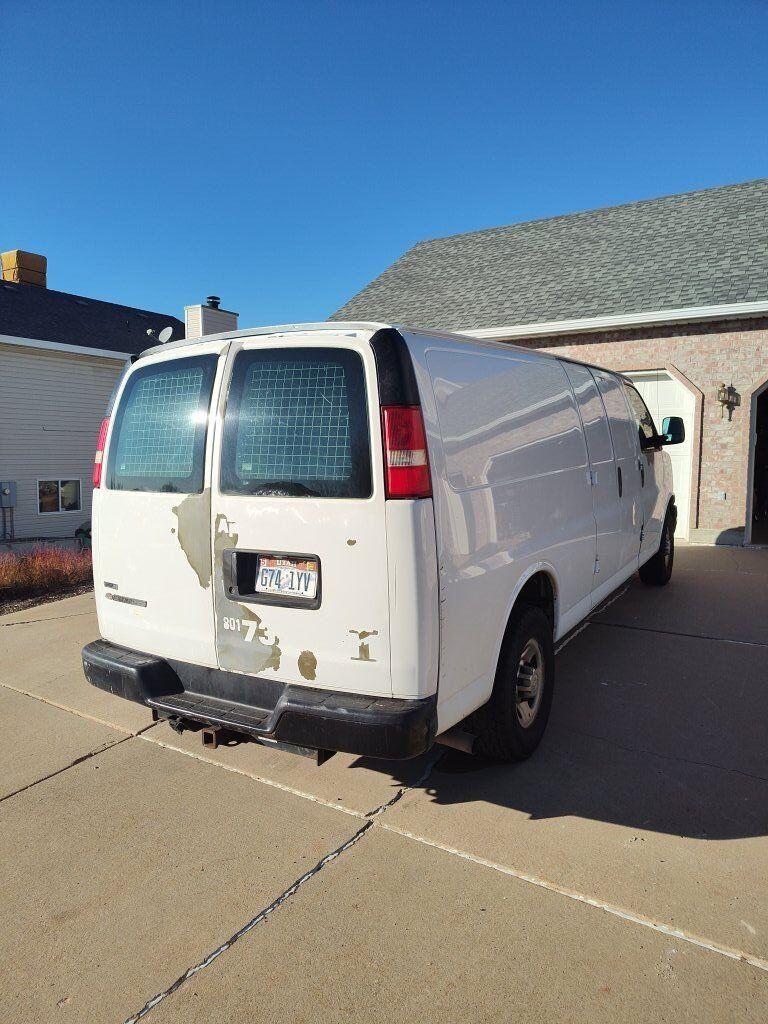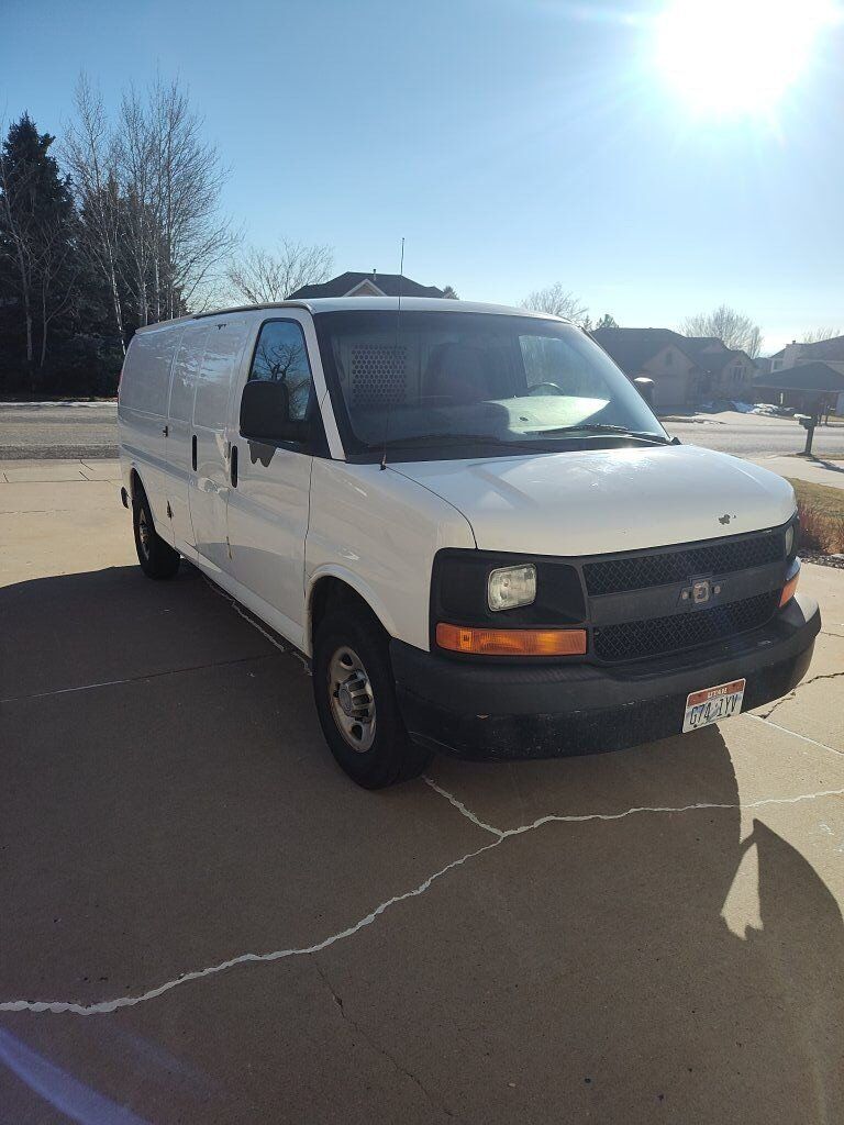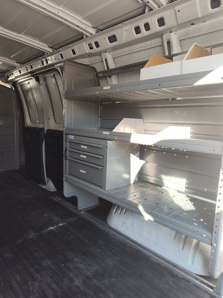 2011 Chevy Express cargo van with towing package and adrian steel shelving and partition. No leaks. Good condition. Good tires. Transmission shifts hard sometimes.
