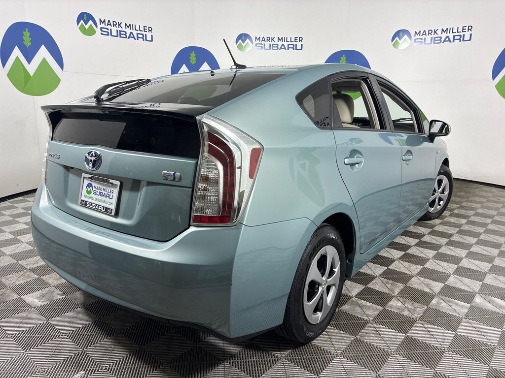 This 2014 Sage Green Toyota Prius Four FWD is well equipped and includes these features and benefits: 1.8L 4-Cylinder DOHC 16V VVT-i, 4-Wheel Disc Brakes, 6J x 15'' 5-Spoke Aluminum Alloy Wheels, ABS brakes, Air Conditioning, Alloy wheels, Anti-whiplash front head restraints, Automatic temperature control, Brake assist, Bumpers: body-color, CD player, Delay-off headlights, Driver door bin, Driver vanity mirror, Dual front impact airbags, Dual front side impact airbags, Electronic Stability Control, Front anti-roll bar, Front Bucket Seats, Front Center Armrest w/Storage, Front reading lights, Front wheel independent suspension, Heated door mirrors, Illuminated entry, Knee airbag, Low tire pressure warning, Occupant sensing airbag, Outside temperature display, Overhead airbag, Overhead console, Panic alarm, Passenger door bin, Passenger vanity mirror, Power door mirrors, Power steering, Power windows, Rear seat center armrest, Rear window defroster, Rear window wiper, Remote keyless entry, Speed control, Split folding rear seat, Spoiler, Steering wheel mounted A/C controls, Steering wheel mounted audio controls, Telescoping steering wheel, Tilt steering wheel, Traction control, Trip computer, and Variably intermittent wipers.