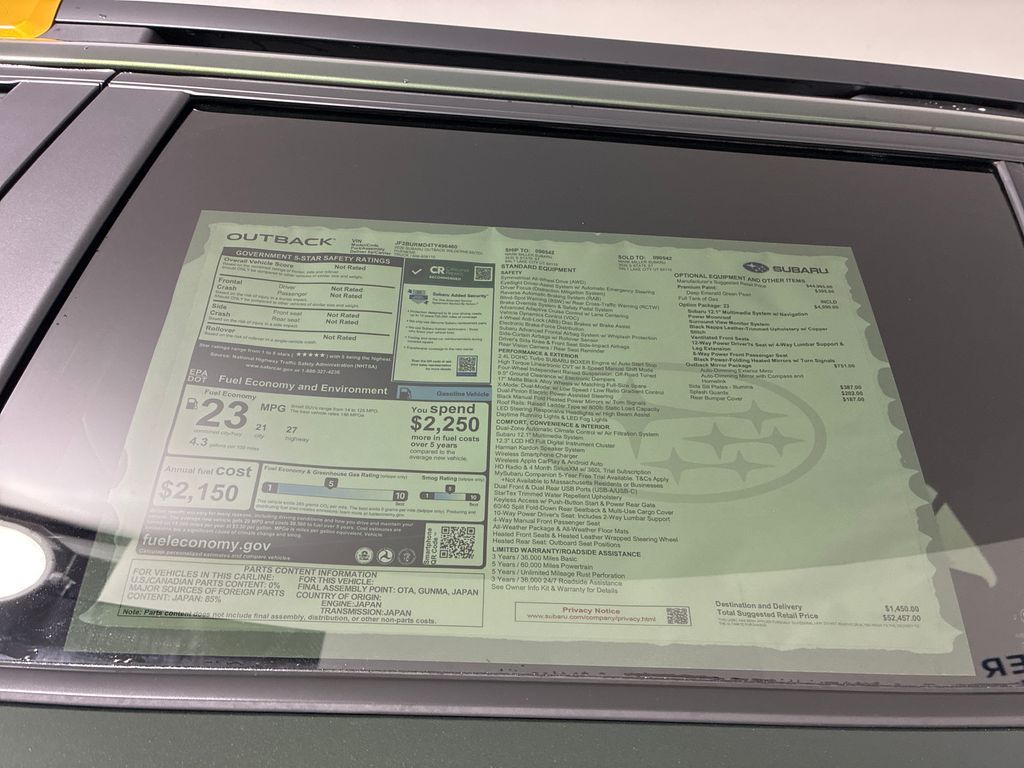 2026 Deep Emerald Green Pearl Subaru Outback Factory MSRP: $52,457