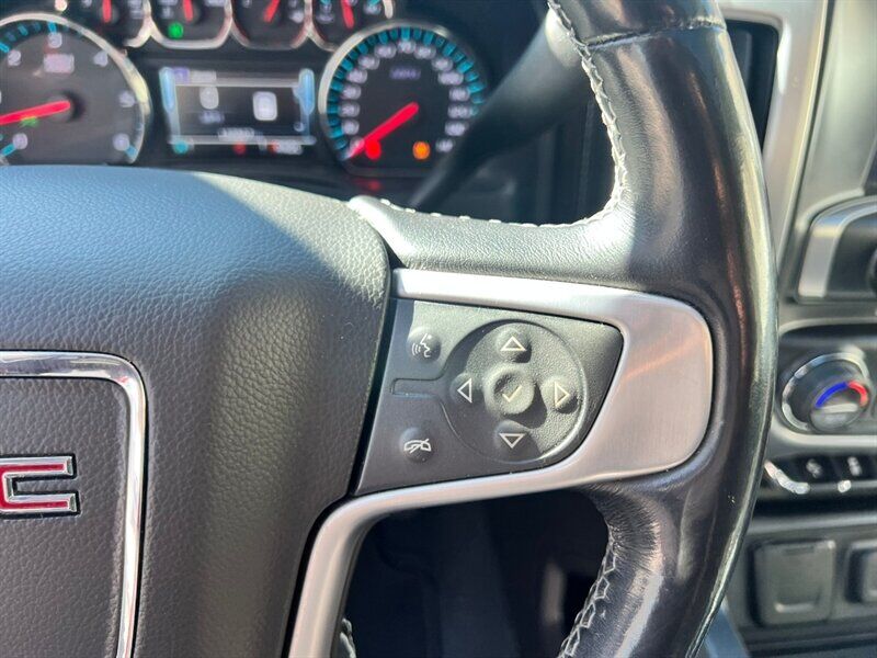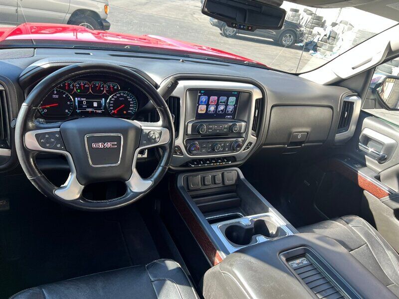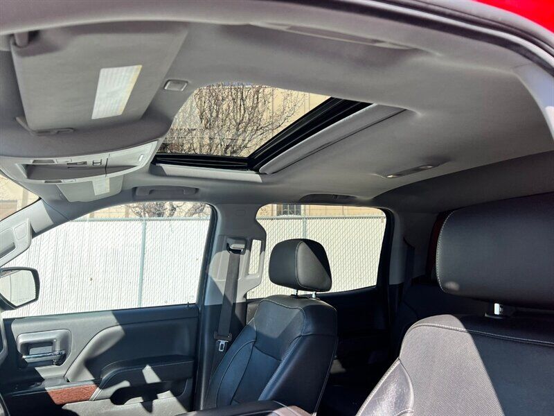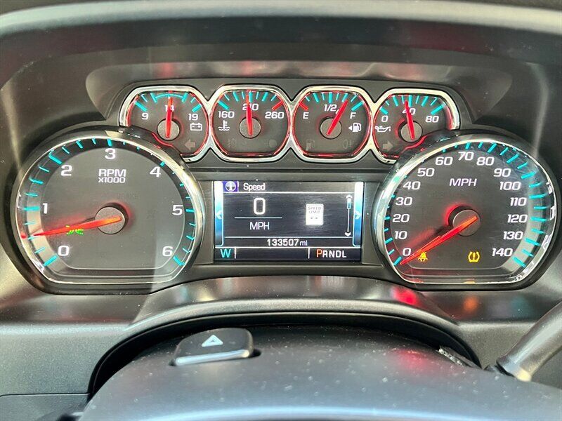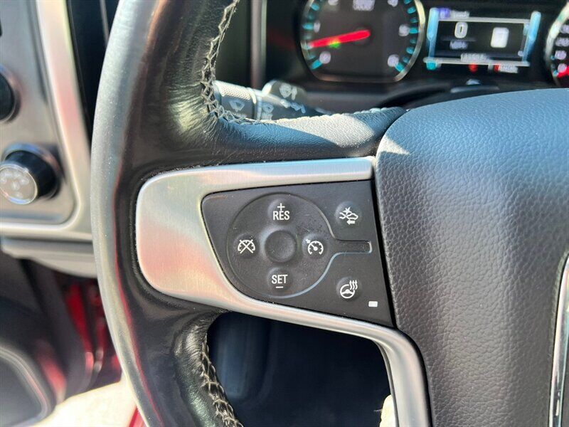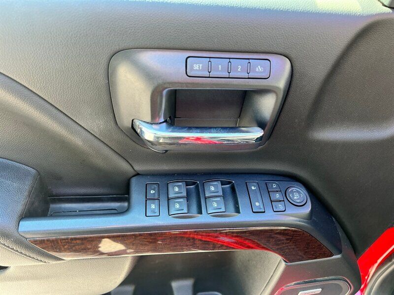 INSTALLED FEATURES: Air filtration, Front air conditioning: automatic climate control, Front air conditioning zones: dual, Airbag deactivation: occupant sensing passenger, Front airbags: dual, Side airbags: front, Side curtain airbags: front / rear, Antenna type: diversity / mast, Auxiliary audio input: Bluetooth / iPod/iPhone / jack / USB, In-Dash CD: MP3 Playback / single disc, Internet radio app: Pandora, Radio: AM/FM / HD radio / touch screen display / voice operated, Radio data system, Satellite radio: SiriusXM, Speed sensitive volume control, Total speakers: 6, ABS: 4-wheel, Braking assist, Electronic brakeforce distribution, Front brake type: ventilated disc, Power brakes, Rear brake type: ventilated disc, Armrests: front center / rear center with cupholders, Floor mat material: carpet, Floor material: carpet, Floor mats: front / rear, Steering wheel trim: leather, Adjustable pedals: power, Ambient lighting, Assist handle: front / rear, Capless fuel filler system, Cruise control, Cupholders: front / rear, Memorized settings: 2 driver / adjustable pedals / driver seat / side mirrors, Multi-function remote: keyless entry / panic alarm, One-touch windows: 4, Power outlet(s): 115V / 12V front, Power steering, Power windows: lockout button, Reading lights: front, Rearview mirror: auto-dimming, Remote engine start, Steering wheel: tilt and telescopic, Steering wheel mounted controls: audio / cruise control / multi-function, Storage: door pockets / front seatback, Universal remote transmitter: garage door opener, Vanity mirrors: dual illuminating, Active grille shutters, Body side moldings: chrome, Bumper detail: rear step, Door handle color: chrome, Exhaust tip color: stainless steel, Front bumper color: chrome, Grille color: chrome / chrome surround, Mirror color: chrome, Pickup bed light: LED, Rear bumper color: chrome, Tailgate: lift assist / power locking / removable, Window trim: chrome, Infotainment: IntelliLink, Infotainment screen size: 8 in., Clock, Digital odometer, External temperature display, Fuel economy display: MPG / range, Gauge: oil pressure / tachometer, Multi-function display, Trip odometer, Warnings and reminders: coolant temperature warning / lamp failure / low battery / low fuel level / low oil pressure / maintenance due / turn off headlights, Daytime running lights: LED, Exterior entry lights: approach lamps / puddle lamps, Front fog lights: LED, Headlights: auto delay off / auto on/off / LED, Taillights: LED, Side mirror adjustments: power / power folding, Side mirrors: driver side auto-dimming / heated / integrated turn signals, 4WD selector: electronic hi-lo, 4WD type: part time w/ on demand setting, Alternator: 150 amps, Auxiliary oil cooler, Auxiliary transmission fluid cooler, Battery: heavy duty / maintenance-free, Battery rating: 720 CCA, Battery saver, Cylinder deactivation, Locking differential: rear, Camera system: rearview, Check rear seat reminder, Child safety door locks, Child seat anchors: LATCH system, Programmable safety key, Rearview monitor: in dash, Emergency locking retractors: front, Front seatbelts: 3-point, Rear seatbelts: 3-point, Seatbelt pretensioners: front, Seatbelt warning sensor: front, Driver seat: heated, Driver seat power adjustments: 10 / height / lumbar / reclining, Front headrests: 2 / adjustable, Front seat type: 40-20-40 split bench, Passenger seat: heated, Passenger seat power adjustments: 10 / height / lumbar / reclining, Rear headrests: 2 / adjustable, Rear seat folding: folds up, Rear seat type: 60-40 split bench, Upholstery: leather-trimmed, Anti-theft system: alarm / vehicle immobilizer, Power door locks: anti-lockout / auto-locking, Hill holder control, Roll stability control, Stability control, Traction control, Trailer stability control, Front shock type: twin-tube gas, Front spring type: coil, Front stabilizer bar: diameter 34 mm, Front struts, Front suspension classification: independent, Front suspension type: upper and lower control arms, Rear shock type: twin-tube gas, Rear spring type: leaf, Rear suspension classification: solid live axle, Rear suspension type: multi-leaf, Electronic messaging assistance: with read function, Hands-free phone call integration: voice operated, Satellite communications: OnStar, Wi-Fi: hotspot, Wireless data link: Bluetooth, Pickup bed cargo management: tie-down anchors, Tow hooks: front, Tow/Haul mode, Trailer hitch, Trailer wiring: 4-pin / 7-pin, Spare tire mount location: underbody, Spare tire size: full-size, Spare wheel type: steel, Tire Pressure Monitoring System, Wheels: polished aluminum alloy, Front wipers: variable intermittent, Power windows: safety reverse, Tinted glass, Window defogger: rear