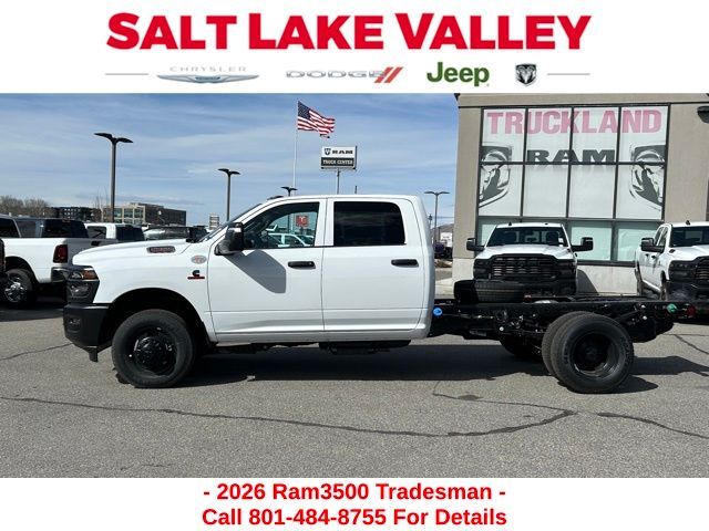 Get the job done and have fun doing it with the new Ram 3500 from Salt Lake Valley CDJR! Power, durability, and innovation come together in every Ram truck. Whether you’re working hard or exploring Utah’s backroads, the 3500 is built to handle it all. Call us today at 801-484-8755 to schedule a time to check it out! 2026 Ram 3500 Tradesman Bright White Clearcoat Cummins 6.7L I6 Turbodiesel