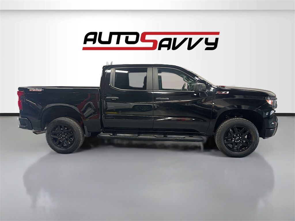Explore the 2025 Chevrolet Silverado 1500 4WD Crew Cab Custom Trail Boss at AutoSavvy Woods Cross, where rugged capability meets modern innovation. This sleek Black Crew Cab, with only 7,327 miles, is powered by a TurboMax 2.7L I-4 engine, delivering a robust 310 horsepower. Enjoy the convenience of a 10-way power driver seat with lumbar support, a 120-volt bed-mounted power outlet, and the seamless integration of Apple CarPlay and Android Auto. The Silverado’s off-road prowess is enhanced by the Autotrac 4WD system and Rancho gas-pressurized shock absorbers, ensuring a smooth ride on any terrain. Safety and technology are at the forefront with features like Automatic Emergency Braking, Lane Departure Warning, and a HD Rear Vision Camera. The current status of the title is branded, highlighting AutoSavvy's dedication to transparency and quality assurance. This Silverado is Savvy Certified, having undergone a comprehensive inspection to ensure top-tier performance and reliability. Drive with peace of mind knowing your investment is protected by our 4-month/4,500 Mile Warranty, offering additional security for your travels. Visit AutoSavvy Woods Cross today to experience the perfect blend of power, technology, and comfort that the 2025 Chevrolet Silverado 1500 4WD Crew Cab Custom Trail Boss offers. Discover the AutoSavvy difference, where every vehicle is crafted to exceed your expectations.