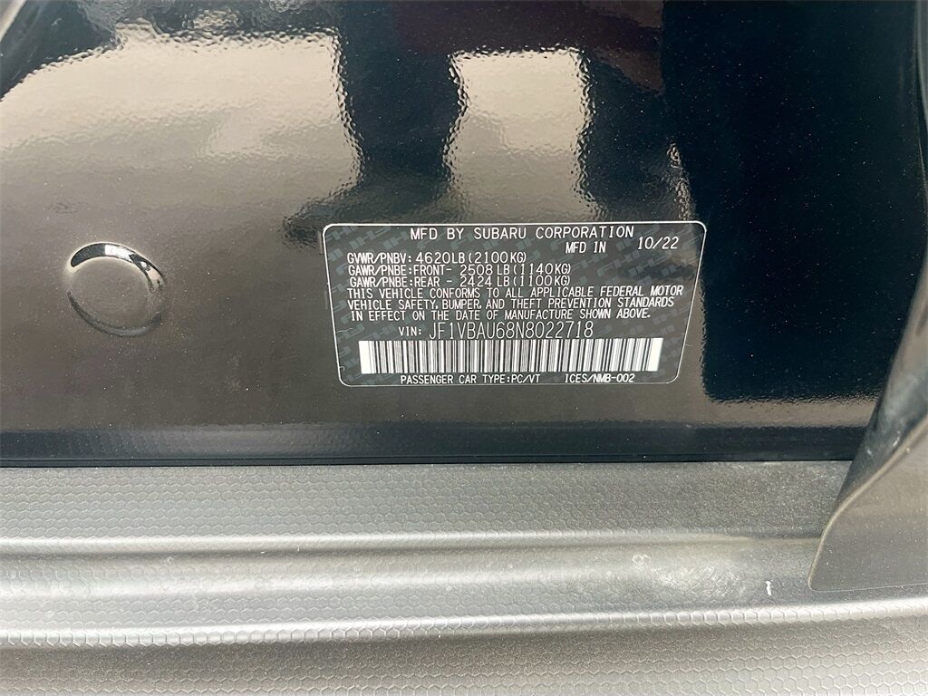 Unleash your driving passion with the 2022 Subaru WRX GT, available now at AutoSavvy Las Vegas. This stunning sedan, clad in Crystal Black Silica, is engineered for thrill-seekers with its potent 2.4L H-4 turbocharged engine that pumps out 271 horsepower. With a mere 15,022 miles, this WRX promises a near-new driving experience. Enjoy the confidence of all-wheel drive and the seamless operation of a CVT transmission. The interior is a haven of luxury, featuring Carbon Black simulated suede and leatherette seats, an expansive 11.6-inch touchscreen equipped with Subaru STARLINK, and seamless smartphone integration through Apple CarPlay and Android Auto. Key features include adaptive cruise control, a sunroof, and heated Recaro front seats, ensuring each journey is both comfortable and exhilarating. The current status of the title is branded, underscoring AutoSavvy's commitment to transparency and quality. As a Savvy Certified vehicle, this WRX GT is backed by our 4-month/4,500 Mile Warranty, offering peace of mind with your purchase. Safety is a priority, with advanced features such as lane departure warning, blind spot monitoring, and automatic emergency braking. Visit AutoSavvy Las Vegas today to discover how the 2022 Subaru WRX GT perfectly blends performance, style, and reliability. Experience the AutoSavvy difference and make a smart choice for your next vehicle.