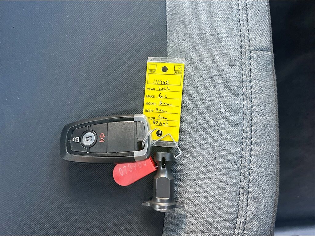 Experience the ultimate off-road adventure with the 2022 Ford Bronco Base, available now at AutoSavvy Las Vegas. This rugged Sport Utility vehicle, finished in a striking Carbonized Gray Metallic, is built to conquer any terrain with its advanced 4x4 capabilities and powerful 2.7L EcoBoost V6 engine, delivering 315 horsepower. With only 34,147 miles, this Bronco is practically new and ready for action. The interior features comfortable Gray/Black cloth seats and a host of conveniences, including Apple CarPlay, Android Auto, and a user-friendly SYNC 4 system with an 8-inch touchscreen display. The Sasquatch Package adds high-clearance suspension and 17-inch black aluminum wheels, making it perfect for both city streets and rugged trails. The current status of the title is branded, underscoring AutoSavvy's commitment to transparency and quality. As a Savvy Certified vehicle, this Bronco comes with our 4-month/4,500 Mile Warranty, offering peace of mind for your investment. At AutoSavvy Las Vegas, we pride ourselves on delivering exceptional vehicles and unparalleled customer service. Whether you're exploring the great outdoors or navigating urban landscapes, the 2022 Ford Bronco Base is engineered to elevate your driving experience. Visit us today to discover why AutoSavvy is the smart choice for your next vehicle.