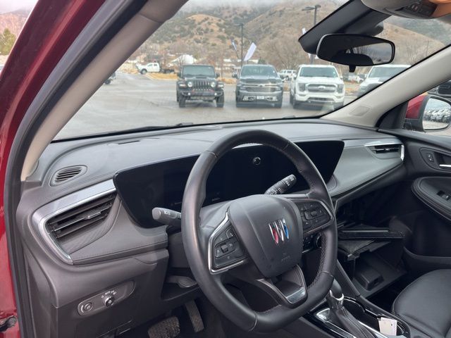 Slip inside, and the Encore GX Sport Touring welcomes you with a cabin designed around comfort and connectivity. The driver-focused cockpit features a sweeping digital display, seamlessly integrating the infotainment system with crisp graphics and intuitive controls. Premium materials, contrast stitching, and refined finishes create an upscale atmosphere, while spacious seating ensures everyone rides in comfort. With flexible cargo space and smart storage solutions, its ready for everything from weekday commutes to spontaneous weekend escapes.Under the hood, the turbocharged engine delivers lively, efficient performance, offering smooth acceleration and responsive handling that makes city driving feel effortless. Its compact size makes navigating tight streets and parking spaces simple, yet it feels composed and confident on the open highway. Advanced safety and driver-assist technologies work quietly in the background, adding reassurance to every journey.