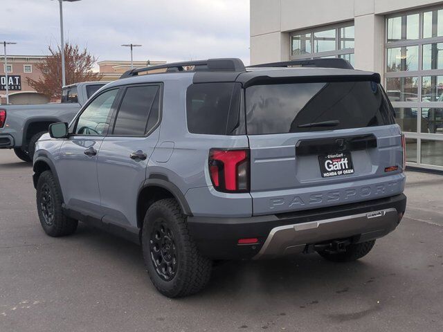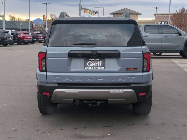 Ken Garff Honda is honored to offer this attractive 2026 Honda Passport TrailSport Elite Blackout in Gk. AWD TrailSport Elite Blackout 10-Speed Automatic12 Speakers, 4-Wheel Disc Brakes, ABS brakes, Adaptive Cruise Control: Adaptive Cruise Control (ACC) with Low-Speed Follow, Air Conditioning, Alloy wheels, Apple CarPlay/Android Auto, Auto High-beam Headlights, Auto-dimming door mirrors, Auto-dimming Rear-View mirror, Automatic temperature control, Blind Spot Information (BSI) System warning, Brake assist, Compass, Delay-off headlights, Driver door bin, Driver vanity mirror, Driver's Seat Mounted Armrest, Dual front impact airbags, Dual front side impact airbags, Electronic Stability Control, Emergency communication system: HondaLink, Exterior Parking Camera Rear, Four wheel independent suspension, Front anti-roll bar, Front Bucket Seats, Front Center Armrest, Front dual zone A/C, Front fog lights, Front reading lights, Fully automatic headlights, Heated and Ventilated Front Bucket Seats, Heated door mirrors, Heated front seats, Heated rear seats, Heated steering wheel, HVAC memory, Illuminated entry, Knee airbag, Lane departure: Lane Keeping Assist System (LKAS) active, Leather steering wheel, Low tire pressure warning, Memory seat, Navigation system: Google Maps, Occupant sensing airbag, Outside temperature display, Overhead airbag, Overhead console, Panic alarm, Passenger door bin, Passenger seat mounted armrest, Passenger vanity mirror, Perforated Leather Seat Trim, Power door mirrors, Power driver seat, Power Liftgate, Power moonroof, Power passenger seat, Power steering, Power windows, Radio data system, Radio: Bose Premium Sound System with 12 Speakers, Rain sensing wipers, Rear air conditioning, Rear anti-roll bar, Rear reading lights, Rear seat center armrest, Rear window defroster, Rear window wiper, Remote keyless entry, Security system, Speed control, Speed-sensing steering, Split folding rear seat, Spoiler, Steering wheel mounted audio controls, Tachometer, Telescoping steering wheel, Tilt steering wheel, Traction control, Trip computer, Turn signal indicator mirrors, Variably intermittent wipers, Ventilated front seats, Wheels: 18 HPD Black Alloy. Fuel Economy estimates are based on EPA mileage ratings. Actual mileage will vary depending on driving conditions, habits, vehicle maintenance, and other factors. Advertised Prices do not include any dealer installed options and advertised prices exclude leases.