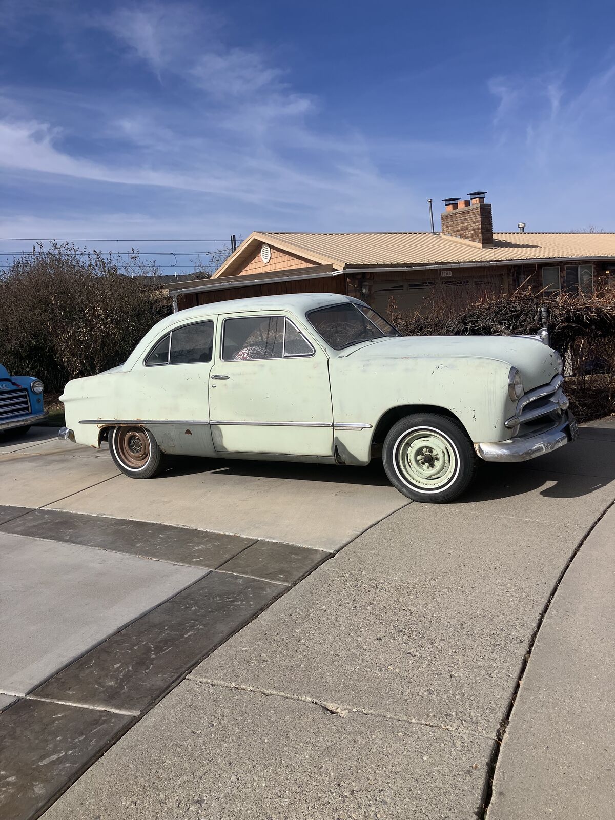 1949 Ford tudor sedan, 239 flathead 8 cylinder engine, 3 speed overdrive transmission on the tree shifter, New seat upholstery black cloth, has some rust but the floor is solid. Just come and see! History of car. Was special order in 1949 for Salt Lake City Police department. Was purchased by a Captain of the department a few years later driven for some time and the stored in the shed in pictures. I bought it from his son. More of the story when you come to check it out! I am open to OFFER!