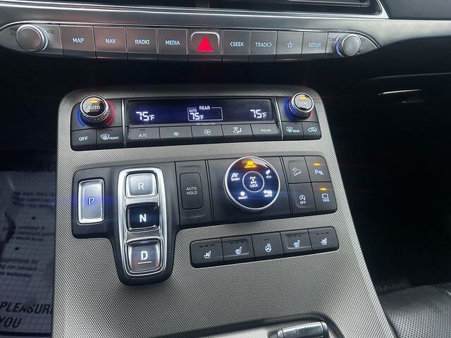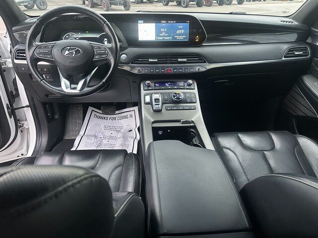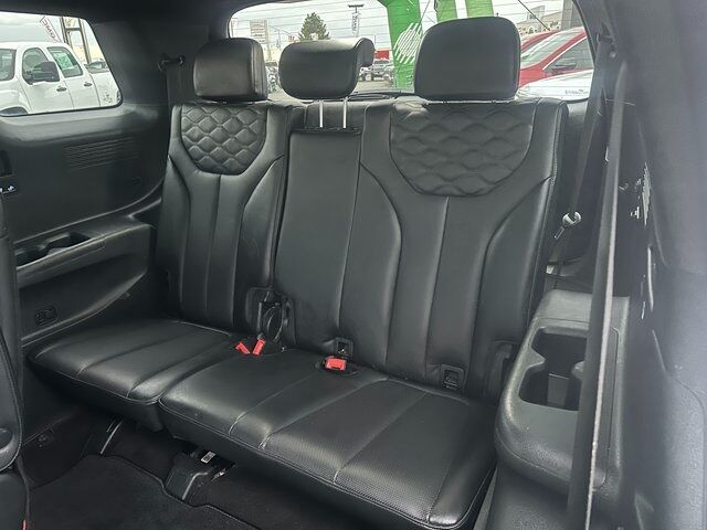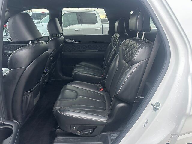 BLUETOOTH, BACK UP CAMERA, APPLE CARPLAY/ANDROID AUTO, CREW CAB/4 DOOR, 12 Speakers, 3.648 Axle Ratio, 3rd row seats: split-bench, 4-Wheel Disc Brakes, ABS brakes, Air Conditioning, Alloy wheels, AM/FM radio: SiriusXM, Apple CarPlay & Android Auto, Auto High-beam Headlights, Auto-dimming Rear-View mirror, Auto-leveling suspension, Automatic temperature control, Brake assist, Bumper Applique, Bumpers: body-color, Cargo Block, Cargo Net, Cargo Package, Cargo Tray, Carpeted Floor Mats, Compass, Delay-off headlights, Driver door bin, Driver vanity mirror, Dual front impact airbags, Dual front side impact airbags, Electronic Stability Control, Emergency communication system: Blue Link Connected Car Service (3-year complimentary subscription), Four wheel independent suspension, Front anti-roll bar, Front Bucket Seats, Front Center Armrest, Front dual zone A/C, Front reading lights, Fully automatic headlights, Garage door transmitter: HomeLink, harman/kardon® Speakers, Heads-Up Display, Heated & Ventilated Front Bucket Seats, Heated door mirrors, Heated front seats, Heated rear seats, Heated steering wheel, Illuminated entry, Knee airbag, Low tire pressure warning, Memory seat, Navigation System, Occupant sensing airbag, Option Group 01, Outside temperature display, Overhead airbag, Overhead console, Panic alarm, Passenger door bin, Passenger vanity mirror, Power door mirrors, Power driver seat, Power Liftgate, Power moonroof, Power passenger seat, Power steering, Power windows, Premium Nappa Leather Seat Trim, Radio data system, Radio: AM/FM/MP3 Premium Audio System, Rain sensing wipers, Rear air conditioning, Rear anti-roll bar, Rear reading lights, Rear window defroster, Rear window wiper, Reclining 3rd row seat, Remote keyless entry, Security system, Speed control, Speed-sensing steering, Split folding rear seat, Spoiler, Steering wheel mounted audio controls, Tachometer, Telescoping steering wheel, Tilt steering wheel, Traction control, Trip computer, Turn signal indicator mirrors, Variably intermittent wipers, Ventilated front seats, Ventilated rear seats, Wheel Locks, Wheels: 20'' x 7.5J Calligraphy Exclusive Alloy. Hyper White V6 8-Speed Automatic with SHIFTRONIC AWD