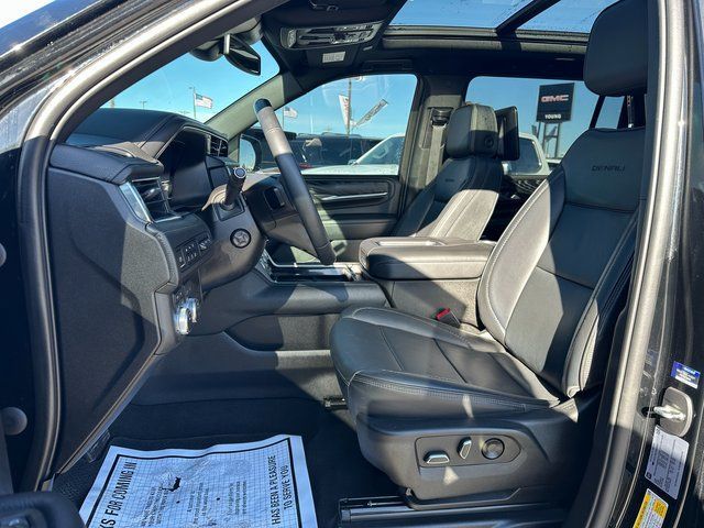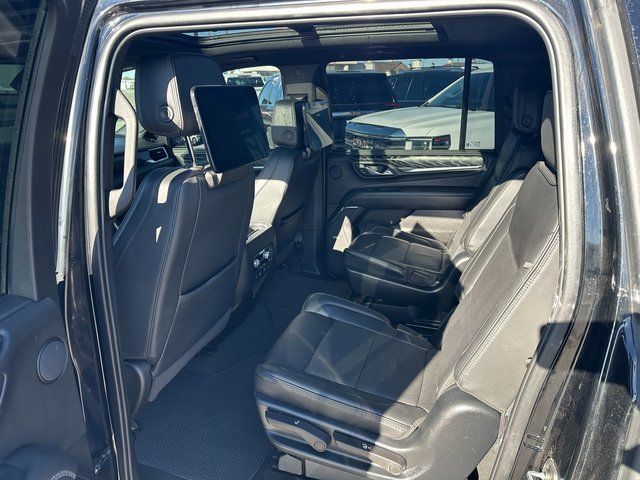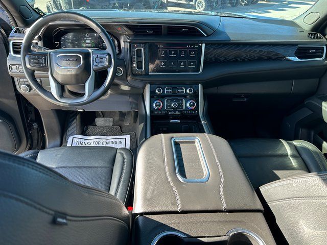 BLUETOOTH, BACK UP CAMERA, APPLE CARPLAY/ANDROID AUTO, MOONROOF/SUNROOF, 4WD, 14 Speakers, 15'' Diagonal Multi-Color Head-Up Display, 2 Presets For Outside Rearview Mirrors, 3 Years of GMC Connected Services, 3 Years of OnStar Safety & Security, 3 Years of OnStar Safety & Security (DISC), 3.23 Rear Axle Ratio, 3rd Row 60/40 Power-Folding Split-Bench Seat, 3rd row seats: split-bench, 4-Wheel Disc Brakes, ABS brakes, Adaptive Cruise Control, Adaptive suspension, Air Conditioning, Alloy wheels, AM/FM radio: SiriusXM with 360L, AM/FM Stereo, Apple CarPlay/Android Auto, Auto High-beam Headlights, Auto-dimming door mirrors, Auto-dimming Rear-View mirror, Auto-leveling suspension, Automatic Emergency Braking, Automatic temperature control, Bodyside moldings, Bose 14-Speaker Surround w/CenterPoint, Brake assist, Bright Front & Rear Door Sill Plates, Bumpers: body-color, Chrome Door Handles w/Body-Color Strip, Compass, Delay-off headlights, Driver door bin, Driver vanity mirror, Dual Exhaust System, Dual front impact airbags, Dual front side impact airbags, Dual-Pane Panoramic Power Sunroof, Electronic Stability Control, Emergency communication system: OnStar and GMC connected services capable, Enhanced Automatic Emergency Braking, Floor Console, Following Distance Indicator, Forward Collision Alert, Four wheel independent suspension, Front & Rear Park Assist, Front anti-roll bar, Front Bucket Seats, Front Center Armrest, Front dual zone A/C, Front fog lights, Front Pedestrian Braking, Front reading lights, Fully automatic headlights, Galvano Bodyside Moldings, Garage door transmitter, Hands-Free Power Programmable Rear Liftgate, HD Surround Vision, Heads-Up Display, Heated & Ventilated Driver & Front Passenger Seats, Heated 2nd Row Outboard Position Seats, Heated door mirrors, Heated Driver & Front Passenger Seats, Heated front seats, Heated rear seats, Heated Steering Wheel, Heated steering wheel, Hill Descent Control, Illuminated entry, Inside Rear-View Auto-Dimming Mirror, IntelliBeam Automatic High Beam On/Off, Lane Change Alert w/Side Blind Zone Alert, Lane Keep Assist w/Lane Departure Warning, License Plate Front Mounting Package, Low tire pressure warning, Magnetic Ride Control Suspension, Memory seat, Navigation System, Not Equipped w/4-Way Driver & Fr Pass Pwr Lumbar, Occupant sensing airbag, Outside Heated Power-Adjustable Mirrors, Outside temperature display, Overhead airbag, Overhead console, Panic alarm, Passenger door bin, Passenger vanity mirror, Perforated Leather Seating Surfaces, Power door mirrors, Power driver seat, Power Liftgate, Power passenger seat, Power Release 2nd Row Bucket Seats, Power steering, Power Tilt & Telescopic Steering Column, Power windows, Power-Retractable Assist Steps, Preferred Equipment Group 5SA, Rain sensing wipers, Rear air conditioning, Rear anti-roll bar, Rear Cross Traffic Alert, Rear Pedestrian Alert, Rear reading lights, Rear Seat Media System, Rear window defroster, Rear window wiper, Remote keyless entry, Roof rack: rails only, Safety Alert Seat, Security system, SiriusXM w/360L, Speed control, Speed-sensing steering, Split folding rear seat, Spoiler, Steering wheel memory, Steering wheel mounted audio controls, Tachometer, Telescoping steering wheel, Tilt steering wheel, Traction control, Trip computer, Turn signal indicator mirrors, Universal Home Remote, Variably intermittent wipers, Ventilated front seats, Voltmeter, Wheel Locks (Set of 4) (LPO), Wheels: 20'' x 9'' 6-Spoke Polished Aluminum, Wheels: 22'' x 9'' Bright Machined Aluminum, Wireless Charging. Onyx Black EcoTec3 6.2L V8 10-Speed Automatic with Overdrive 4WD