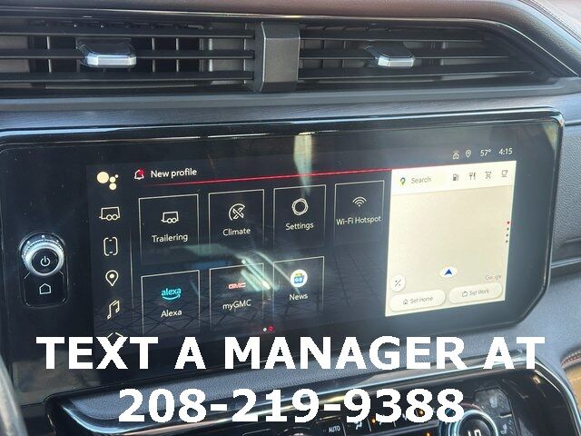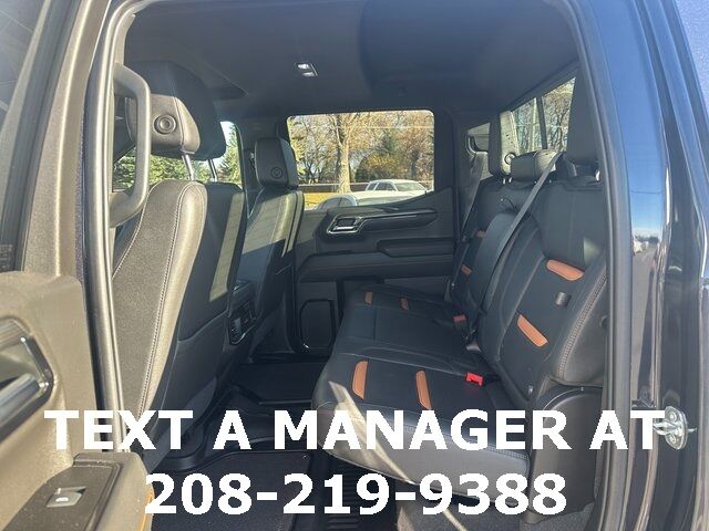 BLUETOOTH, BACK UP CAMERA, APPLE CARPLAY/ANDROID AUTO, MOONROOF/SUNROOF, 10-Speed Automatic, 4WD, Jet Black With Kalahari Accents Leather, 10-Way Power Driver Seat Adjuster w/Lumbar, 10-Way Power Passenger Seat Adjuster w/Lumbar, 120-Volt Bed Mounted Power Outlet, 120-Volt Instrument Panel Power Outlet, 170 Amp Alternator, 18'' x 8.5'' Machined Aluminum Wheels, 2 Charge/Data USB Ports Inside Center Console, 2 Type-C Charge-Only Rear USB Ports, 2 USB Ports, 220 Amp Alternator, 3.23 Rear Axle Ratio, 4-Wheel Disc Brakes, 7 Speakers, ABS brakes, Adaptive Cruise Control, Air Conditioning, Alloy wheels, AM/FM radio: SiriusXM with 360L, Apple CarPlay/Android Auto, AT4 Preferred Package, AT4 Premium Package, Auto High-beam Headlights, Auto-dimming door mirrors, Auto-dimming Rear-View mirror, Auto-Locking Rear Differential, Automatic Emergency Braking, Automatic temperature control, Auxiliary External Transmission Oil Cooler, Bed View Camera, Black Chrome Header & Grille Insert Bars, Black Sport Step (LPO), Block heater, Brake assist, Buckle to Drive, Bumpers: body-color, Color-Keyed Carpeting Floor Covering, Compass, Deep-Tinted Glass, Delay-off headlights, Driver door bin, Driver Memory, Driver vanity mirror, Dual front impact airbags, Dual front side impact airbags, Electric Rear-Window Defogger, Electrical Steering Column Lock, Electronic Stability Control, Emergency communication system: OnStar and GMC Connected Services capable, Engine Block Heater, External Engine Oil Cooling, Floor-Mounted Center Console, Following Distance Indicator, Forward Collision Alert, Front anti-roll bar, Front Bucket Seats, Front Center Armrest, Front dual zone A/C, Front fog lights, Front Pedestrian Braking, Front Prem Floor Liners w/Removable Carpet Insert, Front Rainsensing Wipers, Front reading lights, Front wheel independent suspension, Fully automatic headlights, GMC Connected Access Capable, GMC MultiPro Tailgate Step Lights (LPO), HD Rear Vision Camera, HD Surround Vision, Heated 2nd Row Outboard Seats, Heated door mirrors, Heated Driver & Front Outboard Passenger Seating, Heated front seats, Heated rear seats, Heated Steering Wheel, Heated steering wheel, Heavy-Duty Air Filter, Hill Descent Control, Hitch Guidance, Hitch Guidance w/Hitch View, Illuminated entry, In-Vehicle Trailering App, Integrated Trailer Brake Controller, IntelliBeam Automatic High Beam On/Off, Keyless Open & Start, Lane Keep Assist w/Lane Departure Warning, LED Cargo Area Lighting, Low tire pressure warning, Memory seat, Multicolor 15'' Diagonal Head-Up Display, MultiPro Audio System by Kicker (LPO), Navigation System, Not Equip w/Heat & Vent Seat Cushion Blower Motor, Not Equipped w/Front & Rear Park Assist, Not Equipped w/Heated Rear Outboard Seats, Not Equipped w/Heated/Ventilated Front Seats, Occupant sensing airbag, Off-Road High Clearance Step (LPO), Off-Road Suspension, OnStar & GMC Connected Services Capable, Outside temperature display, Overhead airbag, Overhead console, Panic alarm, Passenger door bin, Passenger vanity mirror, Perforated Front Leather Seat Trim, Perimeter Lighting, Power Door Locks, Power door mirrors, Power driver seat, Power Front Passenger Windows w/Express Up/Down, Power Front Windows w/Driver Express Up/Down, Power passenger seat, Power Rake & Telescoping Steering Column, Power Rear Windows w/Express Down, Power Sliding Rear Window w/Rear Defogger, Power steering, Power Sunroof, Power windows, Preferred Equipment Group 4SB, Premium audio system: GMC Infotainment System, Premium Bose 7-Speaker Sound System, Push Button Start, Radio data system, Radio: Premium GMC Infotainment Audio System, Rain sensing wipers, Rear Camera Mirror, Rear Cross Traffic Braking, Rear Pedestrian Detection, Rear Prem Floor Liners w/Removable Carpet Insert, Rear reading lights, Rear seat center armrest, Rear step bumper, Rear Wheelhouse Liners, Rear window defroster, Red Recovery Hooks, Remote keyless entry, Remote Vehicle Starter System, Safety Alert Seat, Security