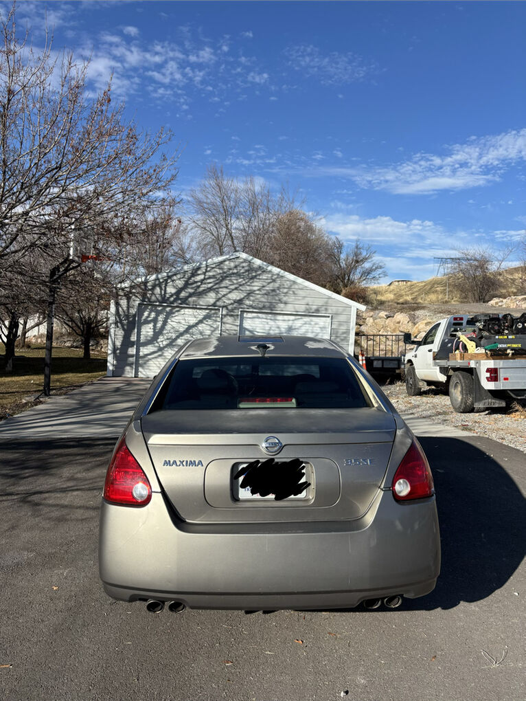 2005 Nissan Maxima in good condition! It’s a really good car. I drove it throughout college and we are just upgrading to a bigger car. Has a double moon roof and leather seats. Just replaced the battery and rear brakes. A/C is out but has all the pieces to fix if wanted. There is a dent and part of the tail light cover is broken on the right side due to a family member backing into it but it still works great and has no other damage. Clean title. $3,500 OBO