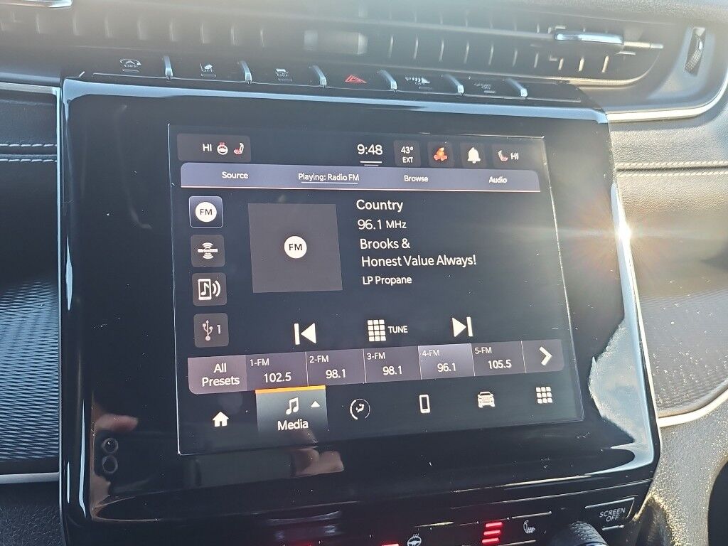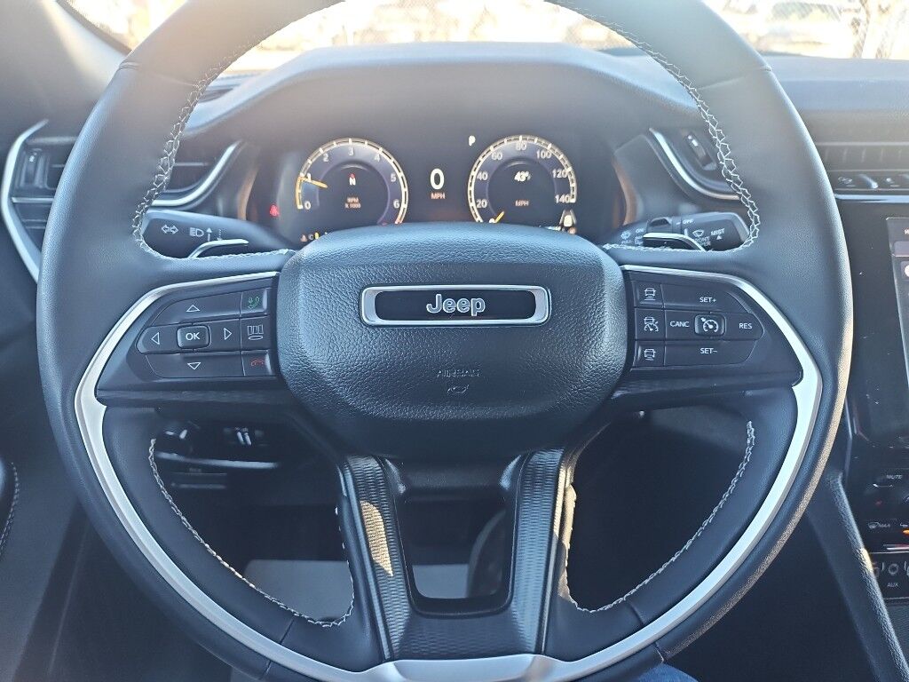 Quick Order Package 22B Altitude: Selectable Tire Fill Alert; Remote Start System; Secondary Active Grille Shutters; Rain Sensitive Windshield Wipers; Wireless Charging Pad; Heated Front Seats; Altitude Appearance Package; Black Headliner; Delete Laredo Badge; 115V Auxiliary Power Outlet; Gloss Black Exterior Accents; Capri Leatherette/suede Seats; Heated Steering Wheel; Power Liftgate,20" X 8.5" Gloss Black Painted Aluminum Wheels,Smart device and keyfob engine start control,Power liftgate rear cargo door,Blind Spot Detection,Heated steering wheel,Uconnect w/Bluetooth handsfree wireless device connectivity,Wireless Apple CarPlay/Android Auto smart device wireless mirroring,10 USB ports,Simulated suede and leatherette front seat upholstery,Driver seat with 8-way directional controls,Front passenger seat with 4-way directional controls,Keyfob trunk control,8.4 inch primary LCD display,Full Speed Forward Collision Warning Plus,Pedestrian/Cyclist Emergency Braking,4G LTE Wi-Fi Hot Spot mobile hotspot internet access,ParkView rear mounted camera,Active Lane Management,Cross Path Detection collision mitigation,Adaptive Cruise Control w/Stop & Go,Predictive brake assist system,Cruise control with steering wheel mounted controls,Heated driver and front passenger seats,Primary monitor touchscreen,Driver seat power reclining, lumbar support, cushion tilt, fore/aft control and height adjustable control,Quadra-Trac I automatic full-time 4WD,Pentastar 3.6L V-6 DOHC, variable valve control, regular unleaded, engine with 293HP,Front wireless smart device charging,Smart key with hands-free access and push button start,Bluetooth wireless audio streaming,Gage cluster display size: 10.25,Following distance alert,Dual-zone front climate control,Voice-activated climate control,Sentry Key immobilizer,Trailer sway control,Vehicle integrated emergency SOS system,Uconnect external memory control,Internet radio capability,Digital/analog instrumentation display,Configurable instrumentation gauges,Electronic stability control system with anti-roll,Hill start assist,Heated rear wiper park,Rear Seat Reminder rear seat check warning,Automatic climate control,ParkSense with Stop rear parking sensors,LED daytime running lights,LED brake lights,Rain detecting wipers,Manual reclining rear seats
