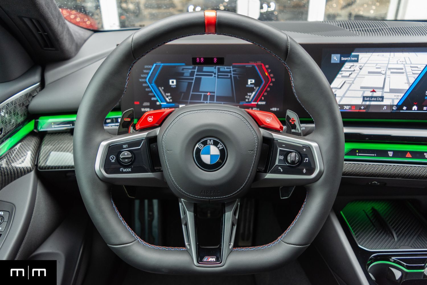 Makes & Models is proud to present this 2025 BMW M5 Sedan finished in Storm Bay Metallic over a Black extended Merino leather. Powering the 2025 M5 is the S68 4.4L Twin-Turbo V8 assisted by a 14.8 kWh single electric motor to produce 717 HP and a staggering 738 lb-ft of torque. Paired to the BMW M Step-tronic 8-speed automatic transmission, the 2025 M5 gets to 60 mph from a standstill in just 3.2 seconds. Upgraded equipment includes the Carbon, Executive, M Drive Professional, and Driving Assistance Packages. Included in the Carbon Package is a fully Carbon Fiber roof, Carbon Fiber mirror caps, and a Carbon Fiber rear spoiler. The Executive package adds the iconic glowing kidney grille, heated & ventilated front seats, heated rear seats, interior camera, and park assistant plus. Driving Assistance Professional package adds active cruise with stop and go, lane keeping assist, traffic jam assist, and active lane change assist. Lastly, the M Drive Professional package includes 10-stage M traction control, the M Drift Analyzer, and the M Lap timer for spirited driving. Also added is Dynamic and Dynamic plus modes for powertrain/cooling optimization, and a Boost option for maximum acceleration activated by holding the left shift paddle, allowing immediate maximum power for 10 seconds. With 2 original keys, the BMW key card, non-negotiable options, 1 lifetime owner, a clean accident-free Carfax report, and a custom soft cover for storage, this mature enthusiast owned M5 is exactly what you'd expect from BMW's best. At Makes & Models, we make financing simple for both in- and out-of-state buyers. Our team specializes in open and enclosed transport and can arrange financing up to 144 months with rates starting at 5.49%. Whether using your own lender or one of our trusted partners, we handle all paperwork electronically to get you in your vehicle quickly and confidently. To learn more call or text our team at 801-546-2277!