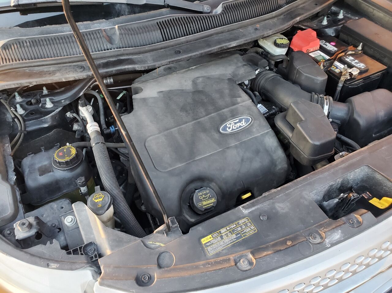 3.5L Ti-VCT V6 engine -inc: 3.39 axle ratio,4-wheel drive,58-amp/hr maintenance-free battery -inc: battery saver feature,200-amp alternator,Trailer sway control,Front recovery hooks,Independent front/rear suspension,Pwr steering,Dual chrome exhaust tips,P245/60R18 all-season BSW tires,Mini spare tire,Silver roof rack side rails,Body-color spoiler,Upper body color/lower black front/rear bumpers,Black wheel lip molding,Black lower bodyside cladding w/chrome accent,Satin silver finish grille,Bi-functional projector beam headlamps,Auto on/off headlamps,Fog lamps,LED tail lamps,Black folding heated pwr mirrors -inc: integrated blind spot mirrors- LED turn signals- approach lights,2nd/3rd row privacy glass,Chrome door handles,Front speed sensitive wipers,Rear 2-speed intermittent wiper,Easy fuel capless fuel filler,(6) audio speakers,Roof mounted antenna,60/40 split-folding 2nd row bench seat,50/50 split-folding 3rd row seat,Floor console w/armrest & storage,Compass,Pwr windows w/1-touch driver & front passenger up/down,Perimeter alarm,SecuriLock passive anti-theft system,Air filtration system,Rear window defogger,Leather wrapped shift knob,Overhead console w/lights & sunglass holder,Color-keyed cloth sunvisors -inc: illum vanity mirrors,2nd/3rd seat rear map light,12V pwr points -inc: (2) front- (1) second row- (1) cargo area,Bright Galvano over LA Grain appliques,Front/rear scuff plates,Grab handles -inc: (1) at passenger seat- (2) in 2nd row,Illuminated entry,Load floor tie-down hooks,Cargo area hooks,Hill start assist,4-wheel antilock disc brakes,Hill descent control,Terrain management system,2nd generation dual front airbags,2nd generation dual front side seat airbags,Front passenger sensing system,Safety Canopy -inc: side curtain airbags- rollover sensor,Reverse sensing system,MyKey system inc: top speed limiter- audio volume limiter- early low fuel warning- programmable sound chimes- Beltminder w/audio mute,SOS Post Crash Alert System,Seat belts -inc: pretensioners- energy management system- adjustable height in 1st row,Belt-Minder feature,Rear door child safety locks,LATCH system on rear outboard seat locations,Tire pressure monitoring system