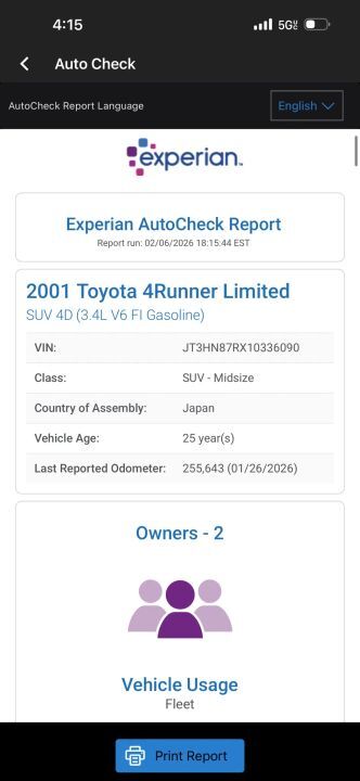 Clean Title, 2 owner, 2001 Toyota 4Runner Limited 4wd. Great SUV for everything from daily driving to getting up into the mountains or down into the desert. These 4Runners run forever. This one has been well taken care of, no major rust or corrosion, paint looks really good for a 25 year old and fun to drive! Push button 4WD makes shifting from 2 to 4 a breeze and no one is ever sad after buying a Toyota from this generation. The 3.4L V6 is a beast and will drive great for your teen getting their driver's license or for you day in and day out.