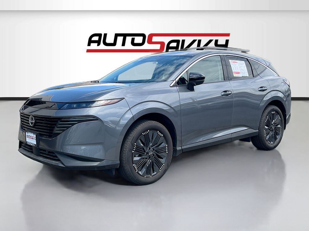 Explore the 2025 Nissan Murano AWD Platinum, now available at AutoSavvy Lindon. This sleek Gun Metallic sport utility vehicle combines luxury with performance, featuring a powerful VC-Turbo 2L I-4 engine that delivers 241HP. With only 2,238 miles on the odometer, this Murano feels practically new. Enjoy the sophisticated interior with Semi-Aniline leather front seat upholstery, a panoramic sunroof, and a premium 12.3-inch touchscreen display equipped with Apple CarPlay and Android Auto. Experience ultimate comfort with heated and ventilated front seats, a heated steering wheel, and dual-zone climate control. Safety is paramount, with advanced features like Adaptive Cruise Control, Blind Spot Monitoring, and a 360-degree camera system ensuring peace of mind on every drive. This 2025 Nissan Murano comes with a branded title, highlighting AutoSavvy's commitment to offering high-quality vehicles at exceptional value. As a Savvy Certified vehicle, it includes a 4-month/4,500-mile limited warranty, providing confidence and peace of mind in your purchase. Every vehicle at AutoSavvy Lindon undergoes a comprehensive inspection to meet rigorous safety and performance standards, ensuring reliability and satisfaction. Join the community of savvy buyers who appreciate the unique benefits of purchasing from AutoSavvy. Visit AutoSavvy Lindon today to explore this exceptional Murano and experience the perfect blend of luxury, innovation, and reliability.