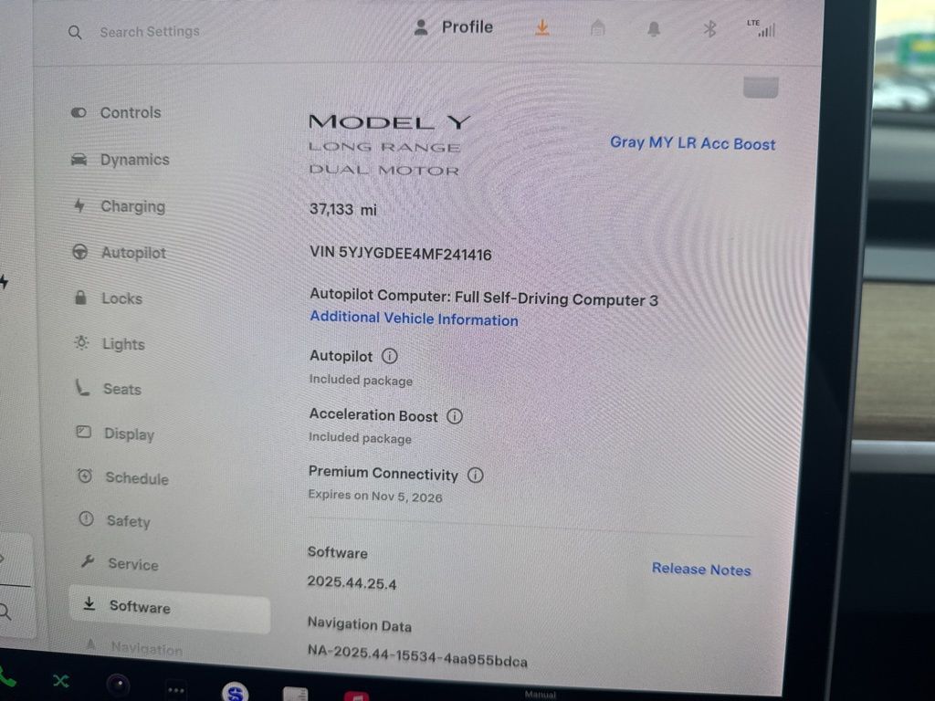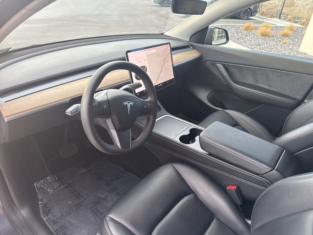 Large central touchscreen provides intuitive control over navigation, media, climate, and vehicle settings, supported by Teslas continuous over-the-air software updates.
