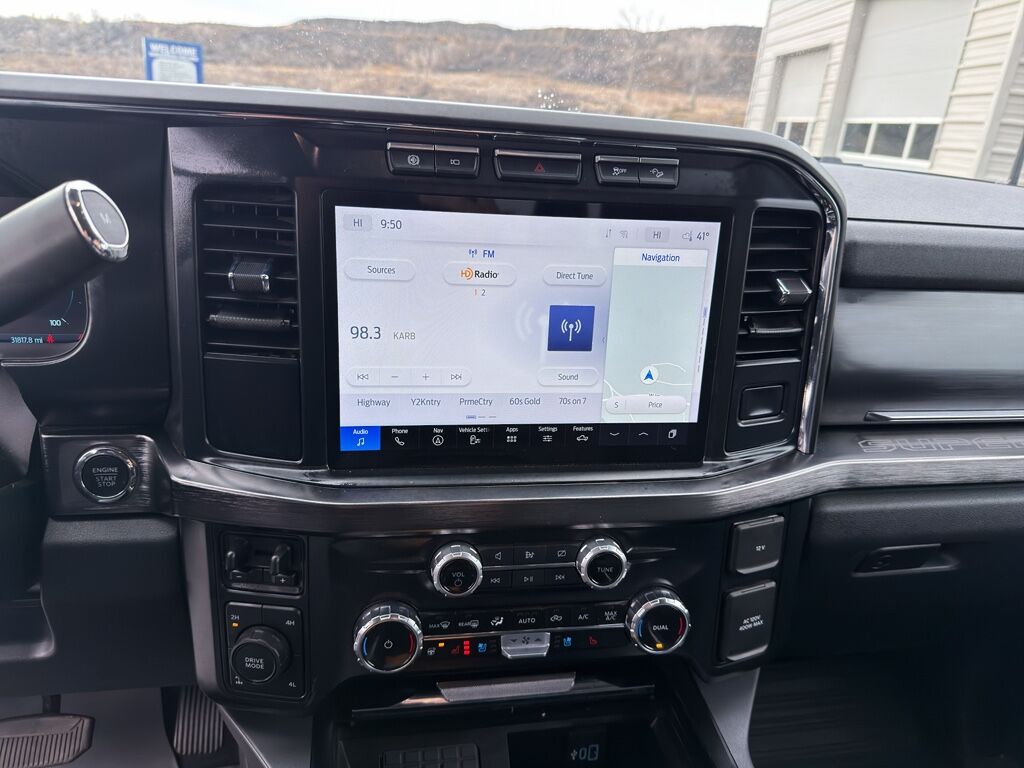 Black Appearance Package: Rear Wheel Well Liners; Ebony Black Painted Front Grille Bars; Ebony Black Painted Mirror Caps; Tough Bed Spray-In Bedliner; Body Color Front and Rear Bumpers; 6" Ebony Black Angular Running Boards,FX4 Off-Road Package: Transfer Case and Fuel Tank Skid Plates; Hill Descent Control; Off-Road Specifically Tuned Shock Absorbers; Unique FX4 Off-Road Box Decal,Order Code 618A: 18" Bright Machined and Carbonized Gray Aluminum Wheels; Front Leather-Trimmed 40/console/40 Seats; TorqShift 10-Speed Automatic Transmission; LT275/70Rx18E BSW A/T (4) Tires; B&O Sound System by Bang and Olufsen,Onboard Scales and Smart Hitch,Tough Bed Spray-In Bedliner,5th Wheel/gooseneck Hitch Prep Package,Electronic-Locking with 3.55 Axle Ratio,Gooseneck Hitch Kit,Rear Wheel Well Liners,All-Weather Floor Mats,Pre-Collision Assist with Automatic Emergency Braking (AEB) forward collision mitigation,FordPass Connect 5G mobile hotspot internet access,Rear mounted camera,Reverse Brake Assist collision mitigation,Brake assist system,Cruise control with steering wheel mounted controls,Ventilated driver and front passenger seats,Connected Navigation (includes complimentary 1-year trial) integrated navigation system with voice activation,Keyfob remote start,Heated steering wheel,Heated driver and front passenger seats,Heated rear seats,Leather front seat upholstery,Primary monitor touchscreen,Driver seat power reclining, lumbar support, fore/aft control and height adjustable control,Part-time 4WD,Powerstroke 6.7L V-8 diesel direct injection, DEVCT intercooled turbo, diesel, engine with 500HP,Powerstroke 6.7L V-8,Front wireless smart device charging,SYNC 4 with Enhanced Voice Recognition (Alexa-Built-In) built-in virtual assistant,SecuriCode external keypad door lock control,Intelligent Access with hands-free access and push button start,360 Degree Camera aerial view camera,Smart device remote start,Push-button,Onboard scale,Weight capacity alert,Bluetooth wireless audio streaming,Dynamic Hitch Assist vehicle to trailer hitching assist,Gauge cluster display size: 12.00,Front mounted camera,Right side camera,Pickup box camera,Left side camera,BLIS with Trailer Tow Coverage blind spot warning,Dual-zone front climate control,SYNC 4 with Enhanced Voice Recognition (Alexa-Built-In) voice-activated climate control,Auto High Beam auto high-beam headlights,SecuriLock immobilizer,B&O Sound System by Bang & Olufsen speakers,SiriusXM Traffic real-time traffic,SYNC 4 handsfree wireless device connectivity,Smart device wireless mirroring,Trailer brake controller,Trailer sway control,SYNC 4 external memory control,Digital/analog instrumentation display,Configurable instrumentation gauges,PowerScope power extendable trailer mirrors,AdvanceTrac w/Roll Stability Control electronic stability control system with anti-roll,6.7L HO Turbo Diesel Engine,FX4 Off-Road Pkg.,Towing/Camper Pkg,Aluminum/Alloy Wheels,B&O Play Stereo System,Bed Liner,Blind Spot Monitor,Collision Avoidance System,Cooled Front Seats,Driver's Seat Memory,Fixed Running Boards,Fog Lights,Heated Front Seats,Locking/Limited Slip Differential,Passive Keyless Entry,Rear Parking Sensors,Remote Engine Starter,V8; HO; Turbo Diesel; 6.7 Liter,Automatic; 10-Spd w/SelectShift & TorqShift,4WD,360-Degree Camera Pkg,Blind-Spot Information System,Hill Start Assist,Traction Control,AdvanceTrac,ABS (4-Wheel),Perimeter Alarm System,Keyless Entry,Keyless Start,Air Conditioning,Power Sliding Rear Window,Power Windows,Power Door Locks,Cruise Control,Remote Tailgate Release,Power Steering,Tilt & Telescoping Wheel,AM/FM/HD Radio,CD/MP3 (Single Disc),Bang & Olufsen,SiriusXM Satellite,Navigation System,SYNC,Backup Camera,360-Degree Camera,Dual Air Bags,Side Air Bags,Head Curtain Air Bags,Heated & Ventilated Seats,Dual Power Seats,Leather,Daytime Running Lights,LED Headlamps,Running Boards,Towing Pkg,Alloy Wheels