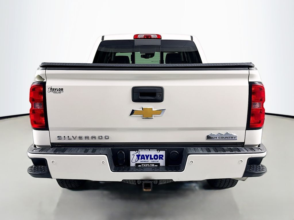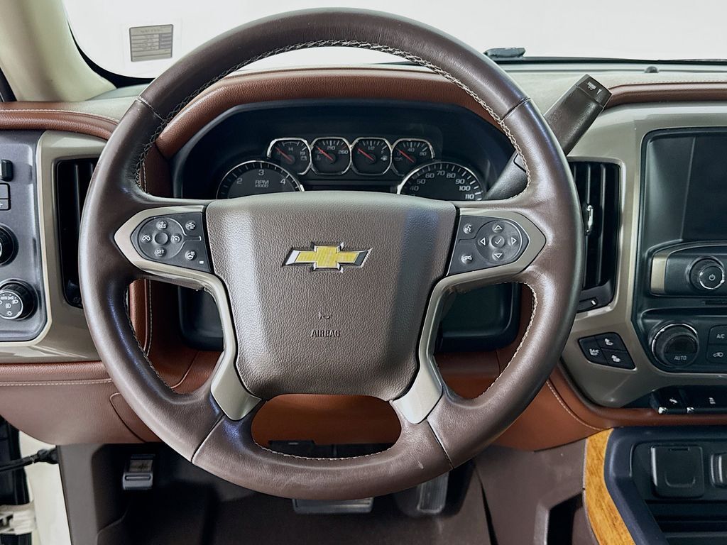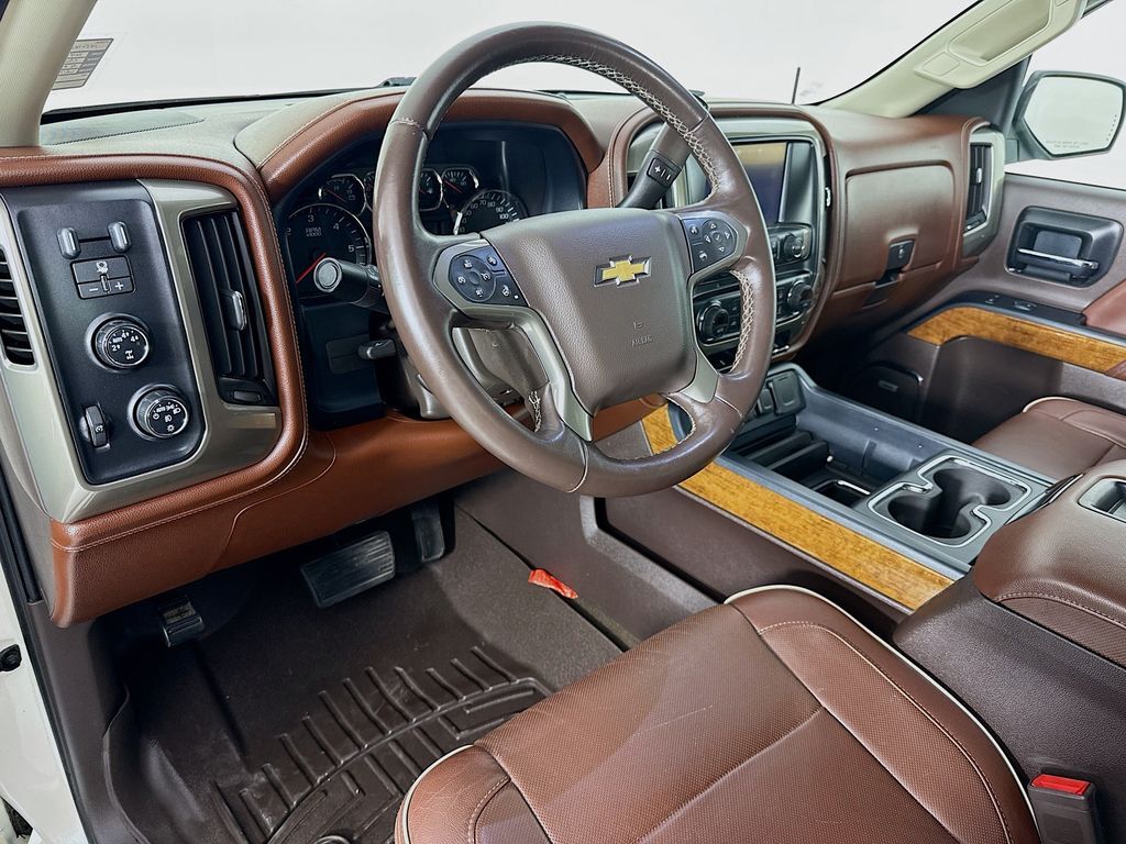 Driver Alert Package: Ultrasonic Front and Rear Park Assist,High Country Premium Package: Leather Wrapped Heated Steering Wheel; Power Adjustable Pedals; Integrated Trailer Brake Controller,Preferred Equipment Group 3LZ: EZ Lift and Lower Tailgate; Chrome Door Handles; Rear Vision Camera with Dynamic Guide Lines; Rear 60/40 Folding Bench Seat (folds Up); Bluetooth For Phone; Remote Vehicle Starter System; Power Sliding Rear Window; 5.3L EcoTec3 V8 FlexFuel Engine; 3.42 Rear Axle Ratio; Theft Deterrent System (unauthorized Entry); Auxiliary External Transmission Oil Cooler; 4.2" Diagonal Color Display Driver Info Center; Trailering Equipment; 110-Volt AC Power Outlet; Front Halogen Fog Lamps; Chrome Grille Surround; 150 Amp Alternator; Steering Wheel Audio Controls; Universal Home Remote; Color-Keyed Carpeting with Rubberized Vinyl Floor Mats; Power Windows with Driver Express Up; OnStar 6 Months Directions and Connections Plan; Remote Keyless Entry; P265/70R17 AS BW Spare Tire; Single Slot CD/MP3 Player; 4WD Active Transfer Case; Deep-Tinted Glass; Dual-Zone Automatic Climate Control; Chrome Cap Power-Adjustable Heated Outside Mirrors; Chrome Mirror Caps; High Country; Leather Wrapped Steering Wheel with Cruise Controls; Manual Tilt/telescoping Steering Column; Driver and Front Passenger Illuminated Vanity Mirrors; Auto-Dimming Inside Rearview Mirror; Rear Wheelhouse Liners; Heavy-Duty Rear Locking Differential; Chrome Bodyside Moldings,White Diamond Tricoat,AM/FM Stereo with 8" Diagonal Color Touch Navigation,P275/55R20 AT BW Tires,Front and Rear All-Weather Floor Mats,LED Cargo Box Lighting,Wheel Locks (set of 4),Rear mounted camera,Brake assist system,Selective service internet access,Cruise control with steering wheel mounted controls,Ventilated driver and front passenger seats,Integrated navigation system,Keyfob remote engine start,Heated steering wheel,Heated driver and front passenger seats,Leather front seat upholstery,Lane departure warning,Driver seat power reclining, lumbar support, cushion tilt, fore/aft control and height adjustable control,AutoTrac part and full-time 4WD,EcoTec3 5.3L V-8 gasoline direct injection, variable valve control, regular unleaded, engine with cylinder deactivation and 355HP,Driver attention alert,Bluetooth wireless audio streaming,Forward Collision Alert,Dual-zone front climate control,PASS-Key III immobilizer,OnStar Directions & Connections vehicle tracker,Bose speakers,OnStar Directions & Connections vehicle integrated emergency SOS system,Bluetooth handsfree wireless device connectivity,OnStar RemoteLink smart device app link,Trailer brake controller,Trailer sway control,Chevrolet MyLink external memory control,Pandora internet radio capability,StabiliTrak w/Proactive Roll Avoidance electronic stability control system with anti-roll,Hill start assist,Automatic climate control,UltraSonic front and rear parking sensors,Front fog lights,Leather and metal-look steering wheel,EZ Lift,EZ Lower,Manual rear child safety door locks,Heated driver and passenger side door mirrors,Power passenger door mirror with tilt down in reverse,Auto-dimming driver side mirror,Power folding door mirrors,Manual tilting steering wheel,Manual telescopic steering wheel,Wheel security locks,Power adjustable pedals,20 x 9-inch front and rear chrome aluminum wheels,6 airbags,Driver front impact airbag,Seat mounted side impact driver airbag,Curtain first and second-row overhead airbags