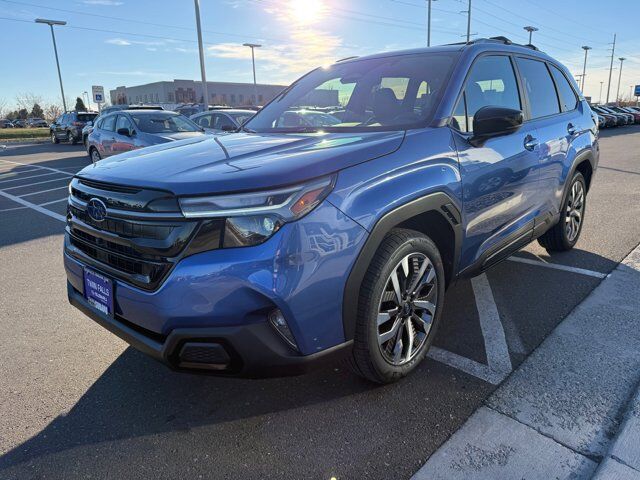 2026 Subaru Forester Touring Daybreak Blue Pearl Touring AWD 2.5L 4-Cylinder DOHC 16V Lineartronic CVT11 Speakers, 4-Wheel Disc Brakes, ABS brakes, Air Conditioning, Alloy wheels, AM/FM radio: SiriusXM with 360L, Anti-whiplash front head restraints, Auto High-beam Headlights, Automatic temperature control, Brake assist, Bumpers: body-color, Driver door bin, Driver vanity mirror, Dual front impact airbags, Dual front side impact airbags, Electronic Stability Control, Emergency communication system: MySubaru Companion (5-years free), Exterior Parking Camera Rear, Four wheel independent suspension, Front anti-roll bar, Front Bucket Seats, Front Center Armrest, Front dual zone A/C, Front fog lights, Front reading lights, Fully automatic headlights, harman/kardon® Speakers, Heads-Up Display, Heated and Ventilated Front Bucket Seats, Heated door mirrors, Heated front seats, Heated rear seats, Heated steering wheel, HVAC memory, Illuminated entry, Knee airbag, Leather Shift Knob, Leather steering wheel, Low tire pressure warning, Memory seat, Navigation System, Occupant sensing airbag, Outside temperature display, Overhead airbag, Overhead console, Panic alarm, Passenger door bin, Passenger vanity mirror, Perforated Leather-Trimmed Upholstery, Power door mirrors, Power driver seat, Power Liftgate, Power moonroof: Panoramic, Power passenger seat, Power steering, Power windows, Radio data system, Radio: Subaru 11.6 Multimedia Navigation System, Rain sensing wipers, Rear anti-roll bar, Rear seat center armrest, Rear window defroster, Rear window wiper, Remote keyless entry, Security system, Speed control, Speed-sensing steering, Split folding rear seat, Spoiler, Steering wheel mounted audio controls, Tachometer, Telescoping steering wheel, Tilt steering wheel, Traction control, Trip computer, Turn signal indicator mirrors, Variably intermittent wipers, Ventilated front seats, Wheels: 19 x 7.5 J Dark Gray Aluminum-Alloy.Visit www.twinfalls-subaru.com To See Our Specials!! Call us at 208-734-8860 for help from any of our team members. Let us show you how great it can be to work with the Magic Valley's #1 Volume Automotive Retailer!