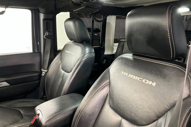 QUICK ORDER PACKAGE 24J RUBICON HARD ROCK -inc: Engine: 3.6L V6 24V VVT Transmission: 5-Speed Automatic (W5A580) Accent Stitching Steel Front Bumper Silver Interior Accents Vehicle Information Center Remote USB Port Uconnect Voice Command w/Bluetooth Tire Pressure Monitoring Display Low Gloss Black Wrangler Decal Chrome/Leather Wrapped Shift Knob MOPAR Rock Rails Premium EVIC Message Center Rubicon Hood Decal Hood w/Power Dome Rubicon Hard Rock Package Red Trail Rated Badge Red Front & Rear Tow Hooks Steel Rear Bumper Black/Chrome Screws Fuel Filler Door,BODY COLOR 3-PIECE HARD TOP -inc: If ordering without AEM (Dual Top Group) the black soft top will not be included Freedom Panel Storage Bag Rear Window Defroster Rear Window Wiper/Washer,ADD 4.10 AXLE RATIO,HEATED FRONT SEATS,RADIO: 430N -inc: 6.5 Touchscreen Display Remote USB Port 5-Year SiriusXM Travel Link Service 40GB Hard Drive w/28GB Available GPS Navigation SiriusXM Travel Link,TRANSMISSION: 5-SPEED AUTOMATIC (W5A580) -inc: Tip Start 3.73 Rear Axle Ratio Hill Descent Control,RHINO CLEARCOAT,ENGINE: 3.6L V6 24V VVT (STD),BODY COLOR FENDER FLARES,REMOTE START SYSTEM,4.10 REAR AXLE RATIO (STD),BLACK LEATHER TRIMMED BUCKET SEATS -inc: Front Seat Back Map Pockets Driver Height Adjuster Seat Heated Front Seats,MAX TOW PACKAGE -inc: Class II Receiver Hitch Trailer Tow w/4-Pin Connector Wiring,Four Wheel Drive,Locking/Limited Slip Differential,Locking/Limited Slip Differential,Power Steering,ABS,4-Wheel Disc Brakes,Brake Assist,Locking/Limited Slip Differential,Brake Actuated Limited Slip Differential,Aluminum Wheels,Tires - Front On/Off Road,Tires - Rear On/Off Road,Conventional Spare Tire,Convertible Soft Top,Convertible Soft Top,Heated Mirrors,Power Mirror(s),Privacy Glass,Intermittent Wipers,Variable Speed Intermittent Wipers,Rollover Protection Bars,Power Door Locks,Automatic Headlights,Fog Lamps,AM/FM Stereo,Satellite Radio,Requires Subscription,MP3 Capability,Steering Wheel Audio Controls,Auxiliary Audio Input,Premium Sound System,Pass-Through Rear Seat,Rear Bench Seat,Adjustable Steering Wheel,Trip Computer,Power Windows,Leather Steering Wheel,Keyless Entry,Power Door Locks,Cruise Control,A/C,Auto-Dimming Rearview Mirror,Driver Vanity Mirror,Passenger Vanity Mirror,Floor Mats,Power Windows,Power Door Locks,Trip Computer,Security System,Immobilizer,Traction Control,Stability Control,Traction Control,Driver Air Bag,Passenger Air Bag,Passenger Air Bag Sensor,Child Safety Locks