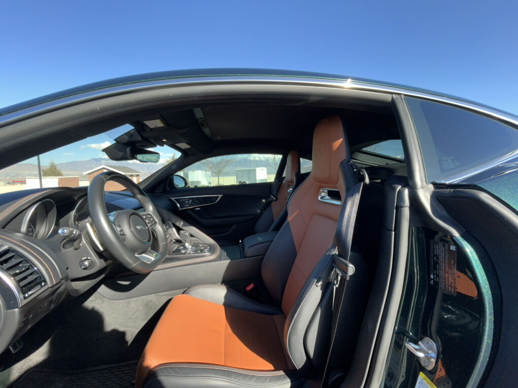We have an OEM Jaguar car cover as well as the original carpet floor mats that have the brown stitching to match the seats.