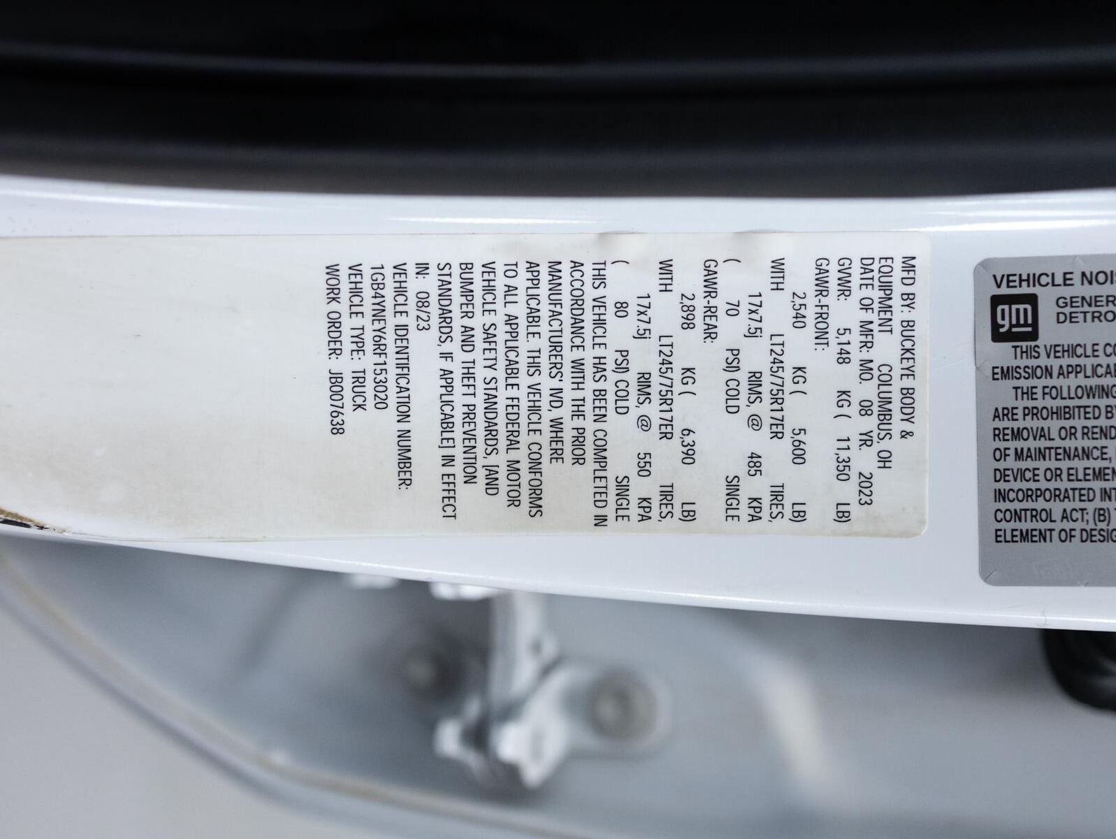 GVWR 11350 LBS. (5148 KG)