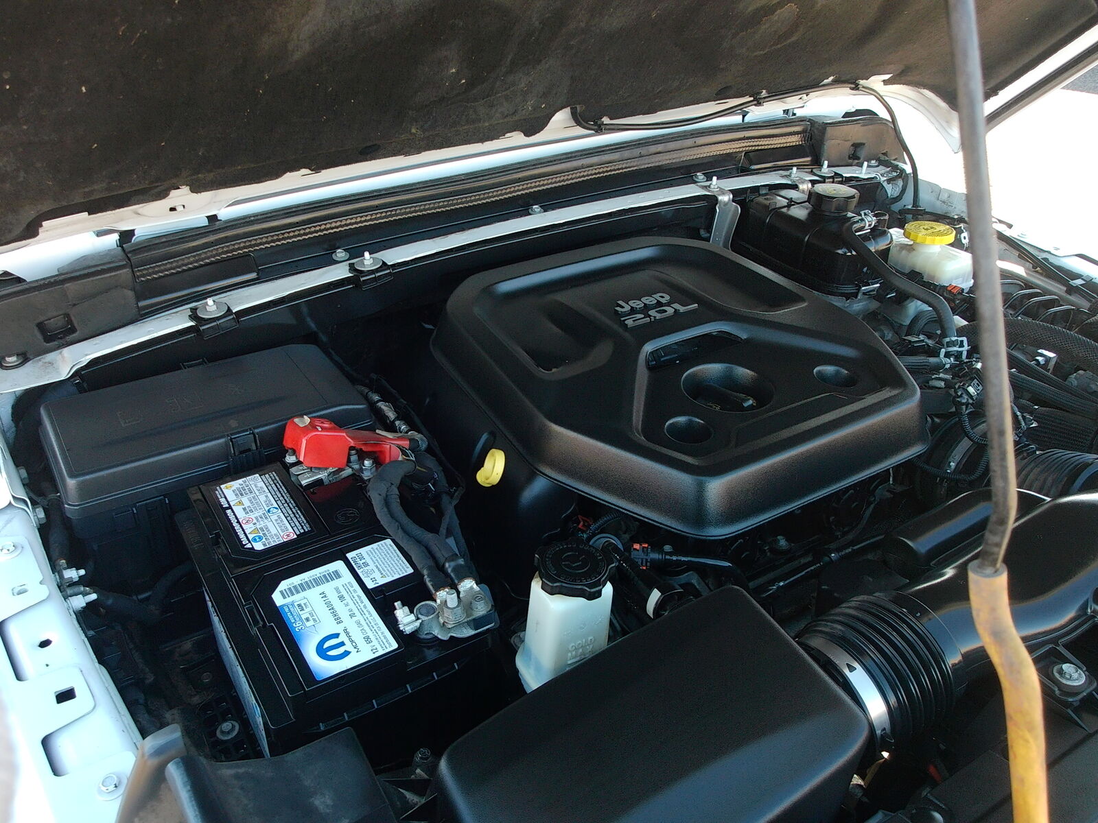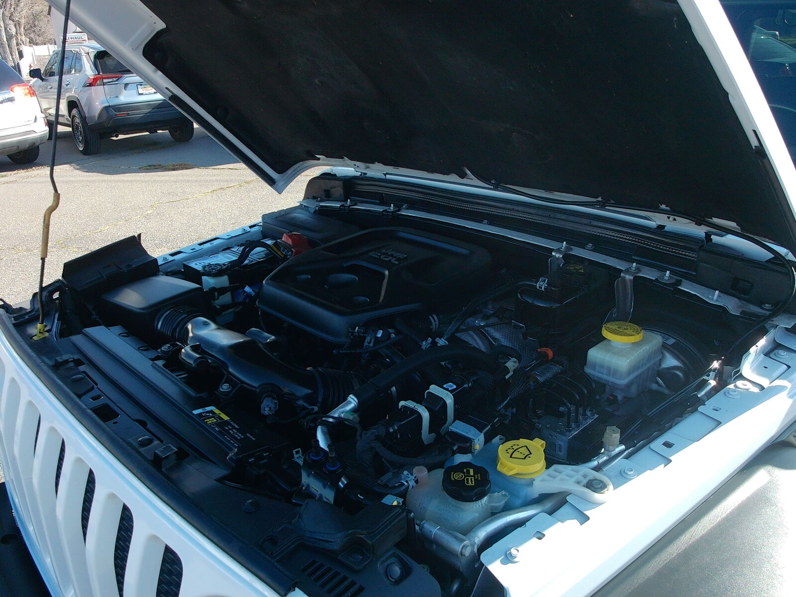 Inside, the cabin features Jeep’s popular 8.4-inch touchscreen radio, keyless entry, and modern safety technology including rear park assist, a backup camera, and a blind spot monitoring system. The durable hard top provides year-round comfort and security while maintaining the iconic Wrangler look.