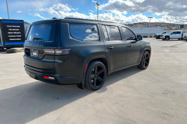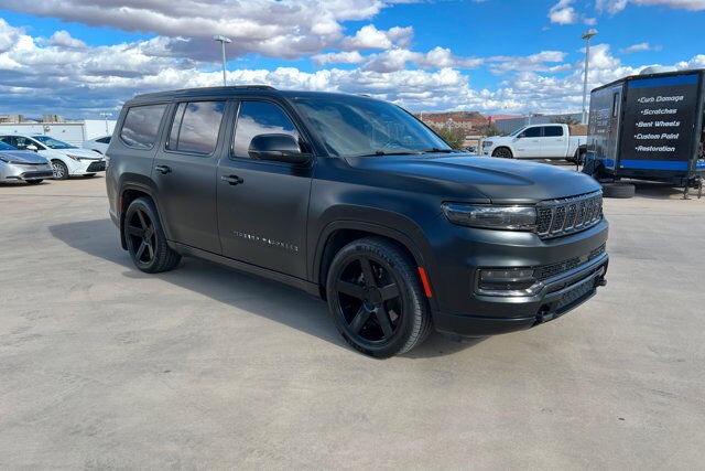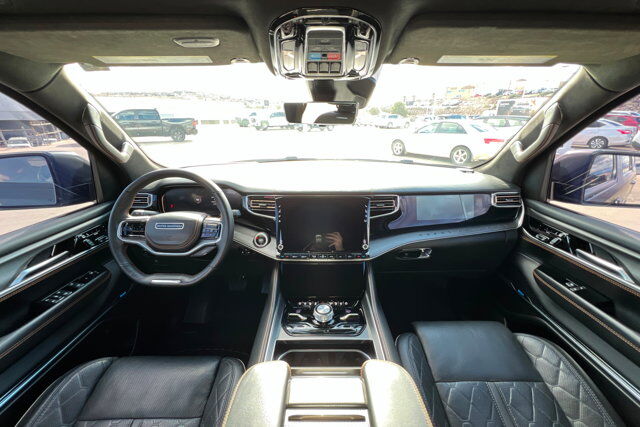 Priced below KBB Fair Purchase Price!CARFAX One-Owner.To see more quality vehicles like this one right here just click on https://www.stephenwadechevrolet.com or dial (435) 986-7900.This Jeep Grand Wagoneer is equipped with the following features: HD Trailer Tow Package (Heavy-Duty Engine Cooling, Removable Rear Tow Hook, Trailer Brake Control, and Trailer Hitch Zoom), Obsidian Appearance Package, Quick Order Package 23T Obsidian (Black Interior Accents, Gloss Black Upper & Lower DLO Molding, Piano Black Exterior Accents, and Wheels: 22 x 9.0 Tinted Polished w/Black Insert), Rear Seat Video Group 1 (Amazon Fire TV Built-In, Seatback Video Screens, and Video USB Port), Two Tone Paint Group, Navigation System, 3.92 Rear Axle Ratio, 3rd row seats: bench, 4-Wheel Disc Brakes, ABS brakes, Adjustable pedals, Air Conditioning, Alloy wheels, AM/FM radio: SiriusXM with 360L, Anti-whiplash front head restraints, Audio memory, Auto High-beam Headlights, Auto-dimming door mirrors, Auto-dimming Rear-View mirror, Auto-leveling suspension, Automatic temperature control, Body Color Roof, Brake assist, Bumpers: body-color, Compass, Delay-off headlights, Driver door bin, Driver vanity mirror, Driver's Seat Mounted Armrest, Dual front impact airbags, Dual front side impact airbags, Electronic Stability Control, Emergency communication system: Automatic SOS Call, Four wheel independent suspension, Front anti-roll bar, Front Bucket Seats, Front Center Armrest w/Storage, Front dual zone A/C, Front fog lights, Front reading lights, Fully automatic headlights, Garage door transmitter, Genuine wood console insert, Genuine wood dashboard insert, Genuine wood door panel insert, Heads-Up Display, Heated door mirrors, Heated front seats, Heated rear seats, Heated steering wheel, Illuminated entry, Knee airbag, Leather steering wheel, Low tire pressure warning, Memory seat, Night vision lights, Normal Duty Suspension, Occupant sensing airbag, Outside temperature display, Overhead airbag, Overhead console, Panic alarm, Passenger door bin, Passenger seat mounted armrest, Passenger vanity mirror, Pedal memory, Power adjustable front head restraints, Power door mirrors, Power driver seat, Power Liftgate, Power moonroof, Power passenger seat, Power steering, Power windows, Premium Leather Trimmed Bucket Seats, Radio data system, Radio: Uconnect 5 Nav w/12.0 Display, Rain sensing wipers, Rear air conditioning, Rear anti-roll bar, Rear dual zone A/C, Rear reading lights, Rear seat center armrest, Rear window defroster, Rear window wiper, Reclining 3rd row seat, Remote keyless entry, Roof rack, Security system, Speed control, Speed-sensing steering, Speed-Sensitive Wipers, Split folding rear seat, Steering wheel memory, Steering wheel mounted audio controls, Tachometer, Telescoping steering wheel, Tilt steering wheel, Traction control, Trip computer, Turn signal indicator mirrors, Variably intermittent wipers, Ventilated front seats, Ventilated rear seats, Voltmeter, and Wheels: 22 x 9.0 Premium 4 Aluminum.