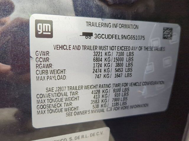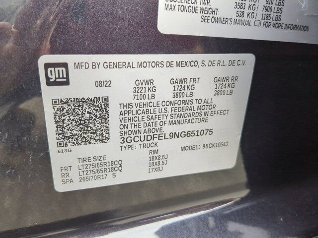 ENGINE 6.2L ECOTEC3 V8 (420 hp [313 kW] @ 5600 rpm 460 lb-ft of torque [624 Nm] @ 4100 rpm); featuring Dynamic Fuel Management that enables the engine to operate in 17 different patterns between 2 and 8 cylinders depending on demand to optimize power delivery and efficiency Includes (N10) dual exhaust.),BOSE SOUND SYSTEM PREMIUM 7-SPEAKER SYSTEM with Richbass woofer,WIRELESS CHARGING,DARK ASH METALLIC,WHEELS 18 X 8.5 (45.7 CM X 21.6 CM) HIGH GLOSS BLACK PAINTED ALUMINUM (STD),REAR AXLE 3.23 RATIO,SHIFTER ELECTRONIC TRANSMISSION RANGE SELECTOR includes steering column paddle shifters,TRAILER CAMERA PROVISIONS,SAFETY PACKAGE includes (UV2) HD Surround Vision (TRG) Trailer Camera Provisions (UKV) Trailer Side Blind Zone Alert (UFB) Rear Cross Traffic Alert-Braking (UKK) Rear Pedestrian Protection and (U12) Perimeter Lighting (Certain vehicles may be forced to include (00Y) Not Equipped with Rear Park Assist which removes Rear Park Assist. See dealer for details or the window label for the features on a specific vehicle. Includes (UD7) Rear Park Assist.,LICENSE PLATE KIT FRONT,PROTECTION PACKAGE includes (B1J) wheel house liners and (CGN) Chevytec spray-on bedliner,AUDIO SYSTEM CHEVROLET INFOTAINMENT 3 PREMIUM SYSTEM with Google built-in 13.4 diagonal HD color touchscreen includes multi-touch display AM/FM stereo Bluetooth streaming audio for music and most phones; featuring wireless Android Auto and Apple CarPlay capability for compatible phones advanced voice recognition in-vehicle apps personalized profiles for infotainment and vehicle settings (STD),JET BLACK LEATHER-APPOINTED FRONT OUTBOARD SEATING POSITIONS,TRAILER SIDE BLIND ZONE ALERT,LT TRAIL BOSS PREMIUM PACKAGE includes (PCM) Convenience Package II (PQB) Safety Package (CXH) Leather Package (WPQ) Protection Package and (QT6) Power up/down tailgate,LIGHTING PERIMETER,GVWR 7100 LBS. (3221 KG),WINDOW POWER REAR SLIDING with rear defogger,EXHAUST DUAL WITH POLISHED OUTLETS,UNIVERSAL HOME REMOTE,CONVENIENCE PACKAGE II includes (UG1) Universal Home Remote (A48) rear sliding power window (PZ8) Hitch Guidance with Hitch View (JL1) Trailer brake controller and (UET) Trailering App Includes (UQA) Bose Premium Sound System.,CENTER CONSOLE FLOOR-MOUNTED with cup holders Wireless Charging power cord management hanging file folder capability; includes removable storage tray Includes (EPH) Electronic Transmission Range Selector (console mounted).),TRAILER BRAKE CONTROLLER INTEGRATED,LEATHER PACKAGE Includes (SNR) Up-level Rear Seat with Storage Package.,CHEVYTEC SPRAY-ON BEDLINER BLACK WITH CHEVROLET LOGO (does not include spray-on liner on tailgate due to Black composite inner panel),TRAILER TIRE PRESSURE MONITOR SENSORS includes set of 4 sensors. Sensor functionality requires (UET) Trailering App to be ordered with the vehicle and installed by the factory. Sensors will be shipped loose with the truck and will need to be installed on trailer by customer. System is capable of monitoring up to 6 wheels. Additional or replacement sensors are available through GM Accessories,SEAT UP-LEVEL REAR WITH STORAGE PACKAGE 60/40 folding bench for Crew Cab models includes full-length bench seat seatback storage on left and right side center fold out armrest with 2 cupholders full cab width underiseat storage (includes child seat top tether anchor),TAILGATE GATE FUNCTION POWER UP/DOWN with power lock and release,COOLING EXTERNAL ENGINE OIL COOLER,HD SURROUND VISION,TRAILERING APP,NOT EQUIPPED WITH STEERING COLUMN LOCK SEE DEALER FOR DETAILS (Certain vehicles built on or after 4-4-2022 will be forced to include (R7N) Not Equipped with Steering Column Lock which removes Steering Column Lock.),SUNROOF POWER on Crew Cab models,USB PORTS 2 CHARGE/DATA PORTS LOCATED INSIDE CENTER CONSOLE,TRANSMISSION 10-SPEED AUTOMATIC with Electronic Transmission Range Selector (ETRS) electronically controlled with overdrive tow/haul mode and steering column paddle shifters. Includes Cruise Grade Braking and Powertrain Grade Braking,LT TRAIL BOSS PREFERRED EQUIPMENT GROUP includes standard equipment,WHEELHOUSE LINERS REAR Certain vehicles built prior to 3-21-2022 and after 4-7-2022 will include rear wheelhouse liners. Certain vehicles built on 3-21-2022 thru 4-7-2022 will be forced to include (RFZ) Not Equipped with Rear Wheelhouse liners which removes Rear Wheelhouse liners. See dealer for details or the window label for the features on a specific vehicle.),TIRE SPARE 265/70R17SL ALL-SEASON BLACKWALL (STD),REAR PARK ASSIST (Certain vehicles may be forced to include (00Y) Not Equipped with Rear Park Assist which removes Rear Park Assist. See dealer for details or the window label for the features on a specific vehicle.,TIRES LT275/65R18C BLACKWALL GOODYEAR WRANGLER DURATRAC MT (STD),HITCH GUIDANCE WITH HITCH VIEW,REAR CROSS TRAFFIC BRAKING,REAR PEDESTRIAN ALERT,SEATS FRONT BUCKET with center console (Includes (EPH) Electronic Transmission Range Selector (console mounted).,COOLING AUXILIARY EXTERNAL TRANSMISSION OIL COOLER,ALTERNATOR 170 AMPS,Tow Hitch,Lane Departure Warning,Lane Keeping Assist,Front Collision Mitigation,Front Collision Warning,Automatic Highbeams,Climate Control,Multi-Zone A/C,A/C,Security System,Rear Defrost,Keyless Entry,Power Door Locks,Power Driver Seat,Adjustable Steering Wheel,Driver Adjustable Lumbar,Leather Steering Wheel,Remote Engine Start,Keyless Start,High Output,Keyless Start,Locking/Limited Slip Differential,Four Wheel Drive,Power Steering,ABS,4-Wheel Disc Brakes,Aluminum Wheels,Tires - Front On/Off Road,Tires - Rear On/Off Road,Tires - Front All-Season,Tires - Rear All-Season,Tow Hooks,Daytime Running Lights,LED Headlights,Automatic Highbeams,Fog Lamps,Heated Mirrors,Power Mirror(s),Privacy Glass,AM/FM Stereo,MP3 Capability,Bluetooth Connection,Auxiliary Audio Input,Smart Device Integration,Satellite Radio,Requires Subscription,Satellite Radio,Requires Subscription,Bluetooth Connection,Smart Device Integration,Bluetooth Connection,WiFi Hotspot,Power