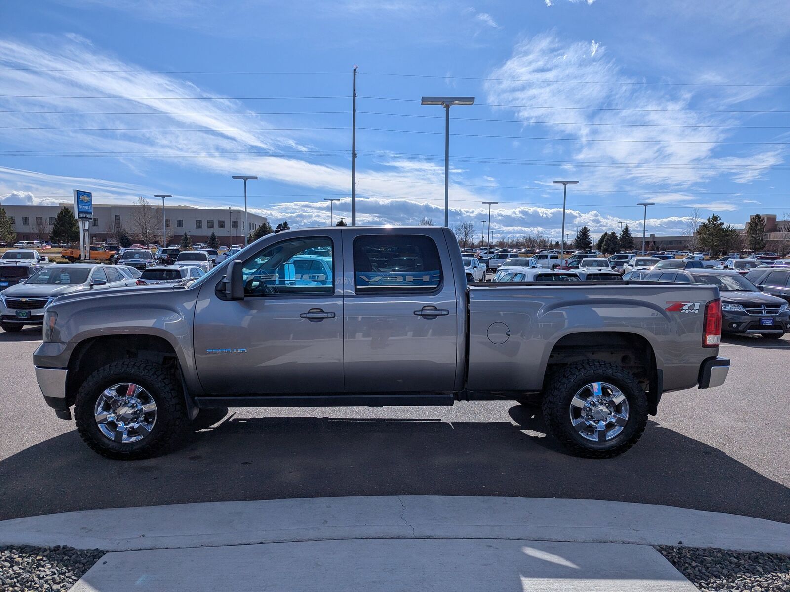 SLT CONVENIENCE PACKAGE includes (JF4) adjustable power pedals (UG1) universal home remote (A60) locking tailgate (PPA) EZ-Lift tailgate and (UD7) Rear Parking Assist and (S41) Rear wheelhouse liner LPO,LPO ALL-WEATHER FLOOR MATS Ebony deep ribbed rubber (Extended and Crew Cab models also include rear floor mats),SKID PLATE PACKAGE FRAME-MOUNTED SHIELDS includes front underbody shield starting behind front bumper and running to first cross-member protecting front underbody oil pan differential case and transfer case,TAILGATE EZ-LIFT,MIRROR INSIDE REARVIEW AUTO-DIMMING with rear camera display,SLT PREFERRED EQUIPMENT GROUP includes standard equipment,MIRRORS OUTSIDE HEATED POWER-ADJUSTABLE VERTICAL CAMPER MANUAL-FOLDING AND EXTENSION BLACK includes integrated turn signal indicators consisting of 50 square inch flat mirror surface positioned over a 20 square inch convex mirror surface with a common head and lower convex spotter glass (convex glass is not heated or power adjustable),BATTERY HEAVY-DUTY DUAL 730 COLD-CRANKING AMPS MAINTENANCE-FREE with rundown protection and retained accessory power,MOCHA STEEL METALLIC,ENGINE DURAMAX 6.6L TURBO DIESEL V8 B20-DIESEL COMPATIBLE (397 hp [296.0 kW] @ 3000 rpm 765 lb-ft of torque [1032.8 N-m] @ 1600 rpm),REAR PARKING ASSIST ULTRASONIC with audible warning,WHEELS 18 (45.7 CM) FORGED POLISHED ALUMINUM includes 18 x 8 (45.7 cm x 20.3 cm) steel spare wheel. Spare not included with (ZW9) pickup box delete unless a spare tire is ordered (STD),CUSTOMER DIALOGUE NETWORK,SEATS FRONT BUCKET includes 10-way power driver and front passenger seat adjusters including 2-way power lumbar control heated seat cushions and seatbacks 2-position driver memory adjustable outboard head restraints floor console and storage pockets (STD),UNIVERSAL HOME REMOTE,ENGINE BLOCK HEATER,GVWR 10 000 LBS. (4536 KG),COVER 1-PIECE COVERS RADIATOR GRILLE AND FRONT BUMPER OPENINGS for diesel engines in winter weather,TRAILERING WIRING PROVISIONS FOR CAMPER FIFTH WHEEL AND GOOSENECK TRAILER includes additional 7-way wiring harness routed to front of pickup box,TIRES LT265/70R18E ALL-TERRAIN BLACKWALL,LPO ASSIST STEPS CHROMED TUBULAR 6 OVAL,PAINT SOLID,TAILGATE LOCKING,PEDALS POWER-ADJUSTABLE FOR ACCELERATOR AND BRAKE,EXHAUST BRAKE,REAR VISION CAMERA,TRANSMISSION ALLISON 1000 6-SPEED AUTOMATIC ELECTRONICALLY CONTROLLED with overdrive electronic engine grade braking and tow/haul mode,LPO FRONT AND REAR MOLDED SPLASH GUARDS MOLDED IN COLOR BLACK includes logo on rear,SUSPENSION PACKAGE OFF-ROAD includes 35mm deflective disk twin tube shock absorbers off-road jounce bumpers 33 front stabilizer bar (NZZ) skid plate package and Z71 decals on rear quarters,AUDIO SYSTEM AM/FM STEREO WITH CD PLAYER AND MP3 PLAYBACK USB port auxiliary input jack seek-and-scan digital clock auto-tone control Radio Data System (RDS) automatic volume TheftLock and 36 cross-band presets (STD),REAR AXLE 3.73 RATIO,VERY DARK CASHMERE/LIGHT CASHMERE LEATHER-APPOINTED FRONT SEAT TRIM,LPO REAR WHEELHOUSE LINER,LICENSE PLATE FRONT MOUNTING PACKAGE,Locking/Limited Slip Differential,Four Wheel Drive,Tow Hooks,Tow Hitch,Power Steering,ABS,4-Wheel Disc Brakes,Aluminum Wheels,Tires - Front All-Season,Tires - Rear All-Season,Automatic Headlights,Fog Lamps,Heated Mirrors,Power Mirror(s),Integrated Turn Signal Mirrors,Power Folding Mirrors,Privacy Glass,Intermittent Wipers,AM/FM Stereo,CD Player,MP3 Capability,Auxiliary Audio Input,Satellite Radio,Requires Subscription,Premium Sound System,Bluetooth Connection,Power Driver Seat,Power Passenger Seat,Bucket Seats,Heated Front Seat(s),Driver Adjustable Lumbar,Passenger Adjustable Lumbar,Seat Memory,Leather Seats,Power Driver Seat,Power Passenger Seat,Rear Bench Seat,Adjustable Steering Wheel,Leather Steering Wheel,Steering Wheel Audio Controls,Power Outlet,Floor Mats,Power Windows,Keyless Entry,Power Door Locks,Cruise Control,Security System,Keyless Entry,Power Door Locks,Remote Engine Start,Climate Control,Multi-Zone A/C,A/C,Rear Defrost,Power Outlet,Auto-Dimming Rearview Mirror,Driver Vanity Mirror,Passenger Vanity Mirror,Driver Illuminated Vanity Mirror,Passenger Illuminated Visor Mirror,Front Reading Lamps,Traction Control,Stability Control,Daytime Running Lights,Driver Air Bag,Passenger Air Bag,Telematics,Requires Subscription,Telematics,Navigation from Telematics,Smart Device Integration,Requires Subscription,Telematics,Requires Subscription,Telematics,Navigation from Telematics,Requires Subscription,Child Safety Locks,Tire Pressure Monitor