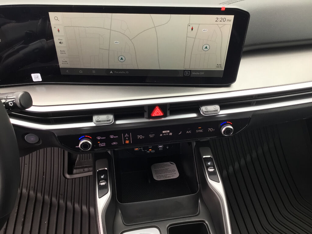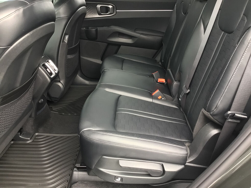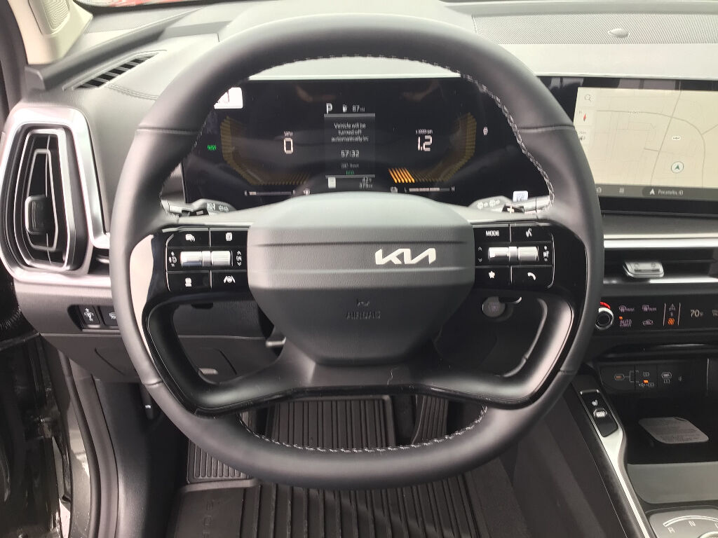 Auto-Dimming Mirror with HomeLink,All Weather Floor Mats,Small First Aid Kit,Apple CarPlay & Android Auto smart device wireless mirroring,Highway Driving Assist (HDA) hands-on cruise control,Forward Collision-Avoidance Assist-Ped/Cyclist pedestrian impact prevention,Highway Driving Assist (HDA) Automatic curve slowdown cruise control,Kia Connect mobile hotspot internet access,Rear mounted camera,Lane Keep Assist System (LKAS),Rear Cross-Traffic Collision Avoidance (RCCA),Navigation-Based Smart Cruise Control-Ramp w/Stop & Go & Curve Control (NSCC-R),Brake assist system,Cruise control with steering wheel mounted controls,Smart Power Liftgate power liftgate rear cargo door,Integrated navigation system with voice activation,Keyfob remote start,Heated driver and front passenger seats,SynTex leatherette front seat upholstery,Primary monitor touchscreen,Fixed third-row seats,Driver seat power reclining, lumbar support, cushion tilt, fore/aft control and height adjustable control,Automatic full-time AWD,1.6L I-4 gasoline direct injection, DOHC, variable valve control, intercooled turbo, regular unleaded, engine with 177HP,1.6L I-4 DOHC,Front wireless smart device charging,Forward Collision-Avoidance Assist (FCA-JT: Cyc/Ped/Junction Turning),Driver Attention Warning (DAW ) w/Lead Vehicle Departure Alert (LVDA),Intelligent Speed Limit Assist (ISLA) traffic sign recognition with automatic speed limit assist,Smart Key with hands-free access and push button start,Smart device remote start,Push-button,Automatic brake hold,Bluetooth wireless audio streaming,Power rear child safety door locks,Smart Liftgate proximity cargo area access release,Blind Spot Collision Warning (BCW) w/Parallel Exit,External exit warning system,Dual-zone front climate control,Kia Connect voice-activated climate control,High Beam Assist (HBA) auto high-beam headlights,Manual fold into floor third-row seat,Immobilizer,Kia Connect vehicle tracker,Selectable Terrain Modes,Real-time traffic,Bluetooth handsfree wireless device connectivity,Multi-level cargo floor,External memory control,7 USB ports,Electronic stability control system with anti-roll,Downhill Brake Control (DBC),Virtual Engine Sound System (VESS) external acoustic pedestrian alert
