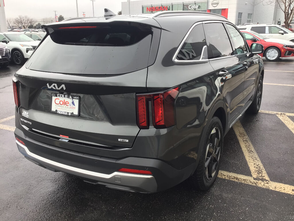 The leather seats in this model are a must for buyers looking for comfort, durability, and style. It employs advanced tech for collision avoidance, enhancing safety on the road. Start the Kia Sorento Hybrid from inside with remote start. See what's behind you with the back up camera on the Kia Sorento Hybrid. Apple CarPlay: Seamless smartphone integration for it - stay connected and entertained on the go! The Kia Sorento Hybrid features a hands-free Bluetooth phone system. This Kia Sorento Hybrid offers Android Auto for seamless smartphone integration. You'll never again be lost in a crowded city or a country region with the navigation system on it. Lane Keep Assist in this mid-size suv helps maintain safe driving by gently steering to stay within the lane. Maintaining a stable interior temperature in the vehicle is easy with the climate control system. Conquer any rainy, snowy, or icy road conditions this winter with the all wheel drive system on this vehicle.