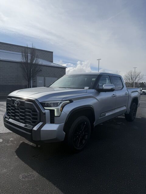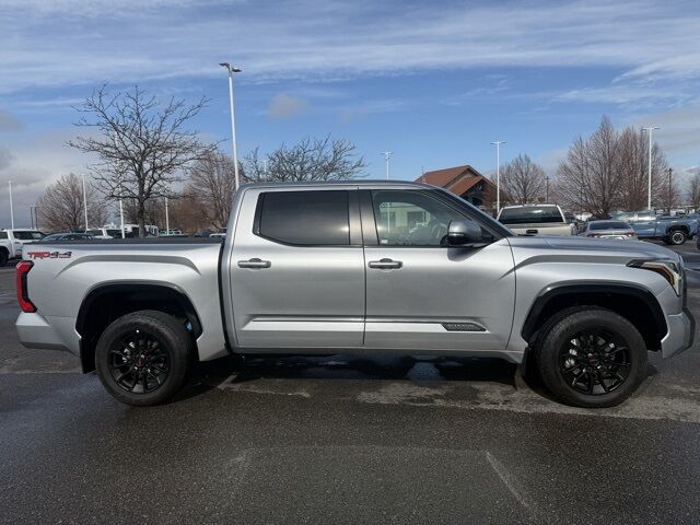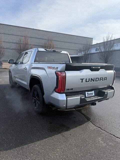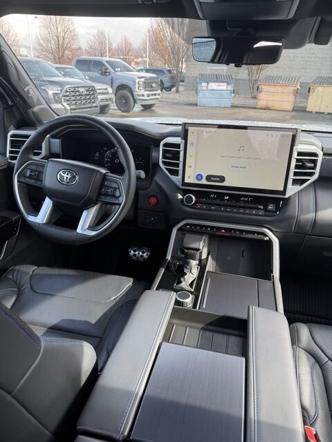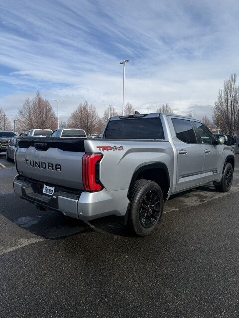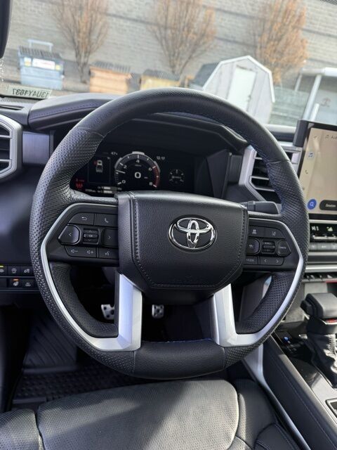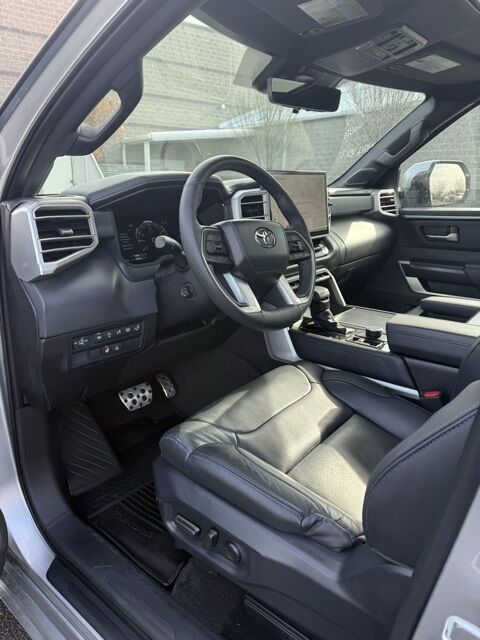 ABS brakes, Active Cruise Control, Alloy wheels, Electronic Stability Control, Front dual zone A/C, Heated door mirrors, Heated front seats, Heated rear seats, Illuminated entry, Low tire pressure warning, Navigation System, Power moonroof, Premium Leather Seat Trim, Remote keyless entry, Traction control. Celestial Silver 2025 Toyota Tundra Platinum 10-Speed Automatic 4WD 3.4L V6 Odometer is 7402 miles below market average!