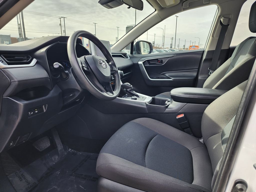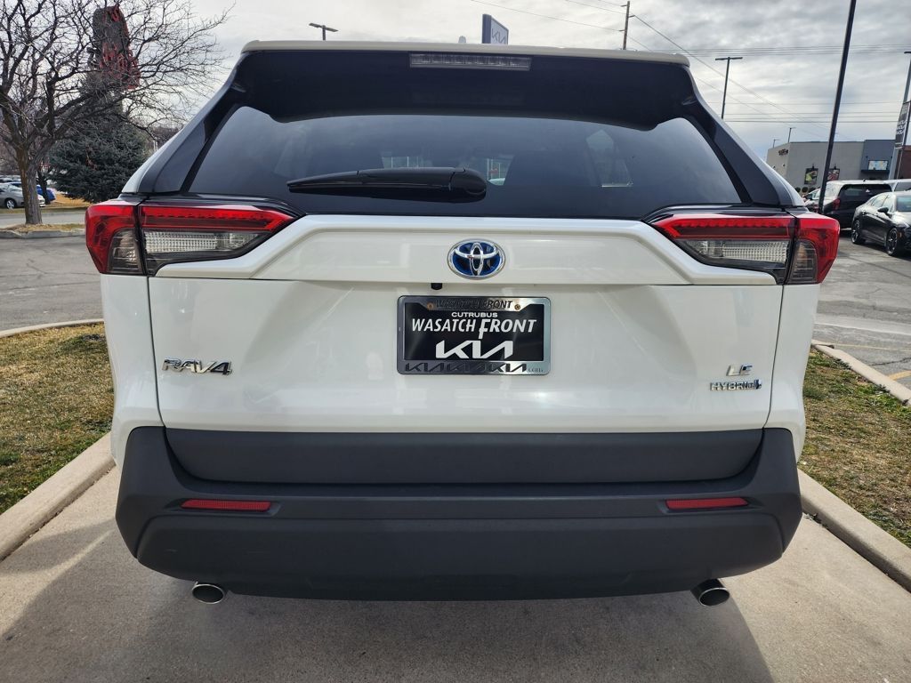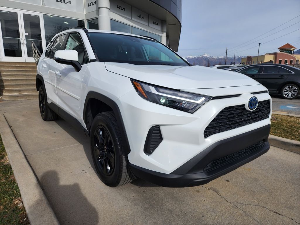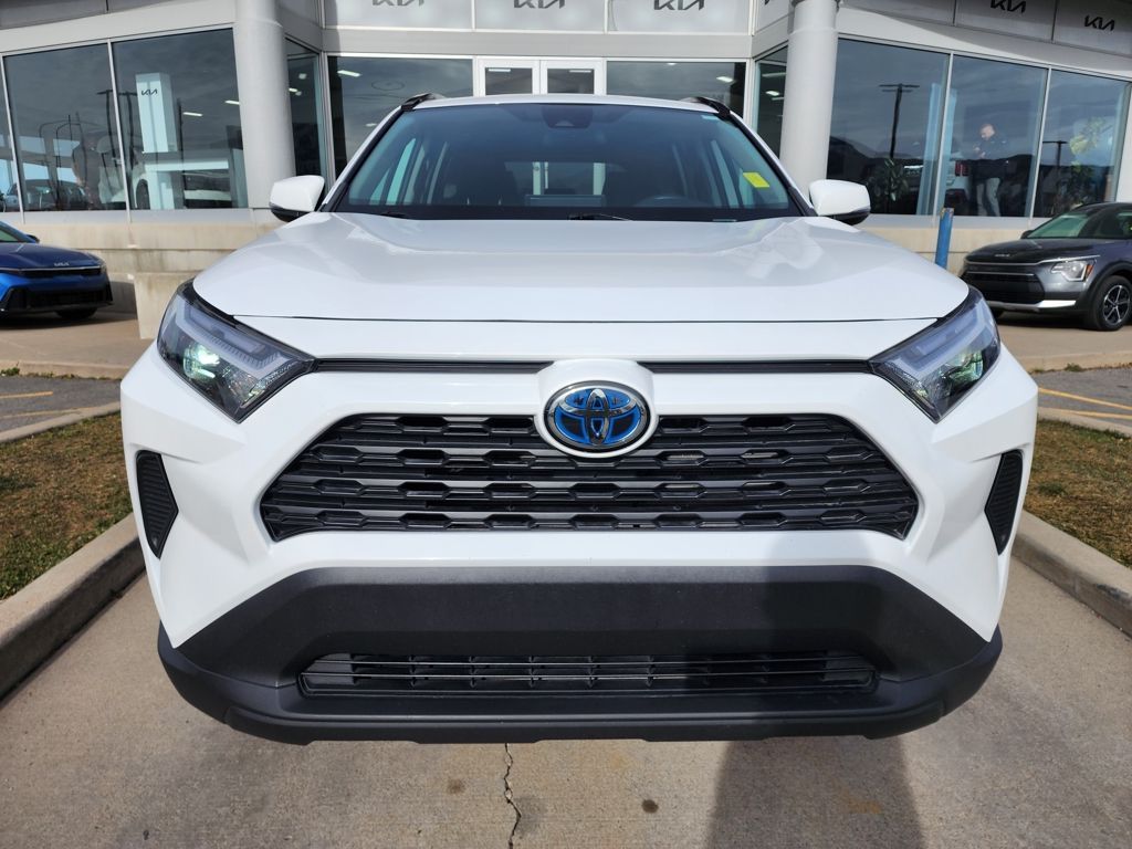 Clean CARFAX. White 2023 Toyota RAV4 Hybrid LE AWD eCVT 2.5L 4-Cylinder 2.5L 4-Cylinder, 4-Wheel Disc Brakes, 6 Speakers, ABS brakes, Air Conditioning, Alloy wheels, AM/FM radio: SiriusXM, Auto High-beam Headlights, Automatic temperature control, Axle Ratio: TBD, Brake assist, Bumpers: body-color, Driver door bin, Driver vanity mirror, Dual front impact airbags, Dual front side impact airbags, Electronic Stability Control, Emergency communication system: Safety Connect (1-year trial), Exterior Parking Camera Rear, Fabric Seat Trim, Four wheel independent suspension, Front anti-roll bar, Front Bucket Seats, Front Center Armrest, Front dual zone A/C, Front reading lights, Front Sport Seats, Illuminated entry, Knee airbag, Lane Departure Warning System, Low tire pressure warning, Occupant sensing airbag, Outside temperature display, Overhead airbag, Overhead console, Panic alarm, Passenger door bin, Passenger vanity mirror, Power door mirrors, Power steering, Power windows, Radio data system, Radio: AM/FM/XM Audio System, Rear anti-roll bar, Rear seat center armrest, Rear window defroster, Rear window wiper, Remote keyless entry, Speed control, Speed-sensing steering, Split folding rear seat, Spoiler, Steering wheel mounted audio controls, Telescoping steering wheel, Tilt steering wheel, Traction control, Trip computer, Wheels: 17'' x 7.0J Silver Aluminum Alloy, 2.5L 4-Cylinder.