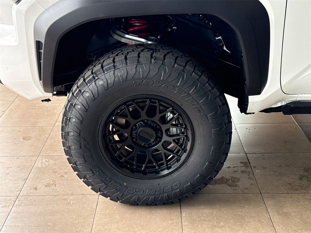 4WD, 18'' Wheels, 3.583 Axle Ratio, 4-Wheel Disc Brakes, 6 Speakers, 8-Way Power Driver and Passenger Seat Adjusters, ABS brakes, Air Conditioning, Alloy wheels, AM/FM radio: SiriusXM, Anti-whiplash front head restraints, Apple CarPlay/Android Auto, Auto High-beam Headlights, Auto-dimming Rear-View mirror, Automatic temperature control, Brake assist, Bumpers: body-color, Door Edge Guard, Driver door bin, Driver vanity mirror, Dual front impact airbags, Dual front side impact airbags, Electronic Stability Control, Emergency communication system: Safety Connect (up to 10-year trial subscription), Exterior Parking Camera Rear, Fabric Seat Trim, Four wheel independent suspension, Front anti-roll bar, Front Bucket Seats, Front Center Armrest, Front fog lights, Front reading lights, Fully automatic headlights, Heated door mirrors, Illuminated entry, Integrated Trailer Brake Controller, Knee airbag, Leather Shift Knob, Leather steering wheel, Low tire pressure warning, Multimedia Glass Screen Protector, Occupant sensing airbag, Outside temperature display, Overhead airbag, Overhead console, Panic alarm, Passenger door bin, Passenger vanity mirror, Power door mirrors, Power Horizontal Rear Window, Power steering, Power windows, Pre-Wire Accommodation (bed Power Port), Radio: 8'' Toyota Audio Multimedia, Rear step bumper, Rear window defroster, Remote keyless entry, Removable Predator Step, Security system, Smart Key w/Digital Key Technology, Speed control, Speed-sensing steering, Split folding rear seat, Steering wheel mounted audio controls, Suspension Kit with 2.5'' Lift, Tachometer, Telescoping steering wheel, Tilt steering wheel, Traction control, TRD Off Road Upgrade Package, Trip computer, Turn signal indicator mirrors, Variably intermittent wipers, 4WD.