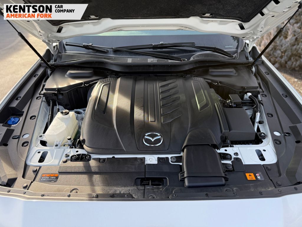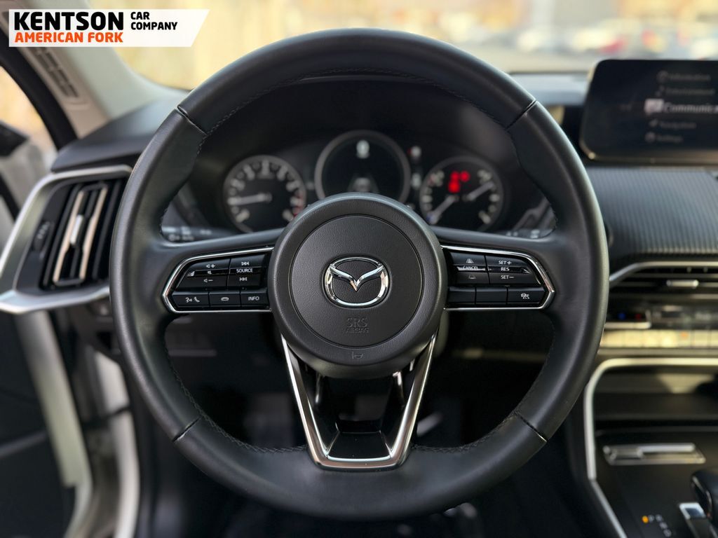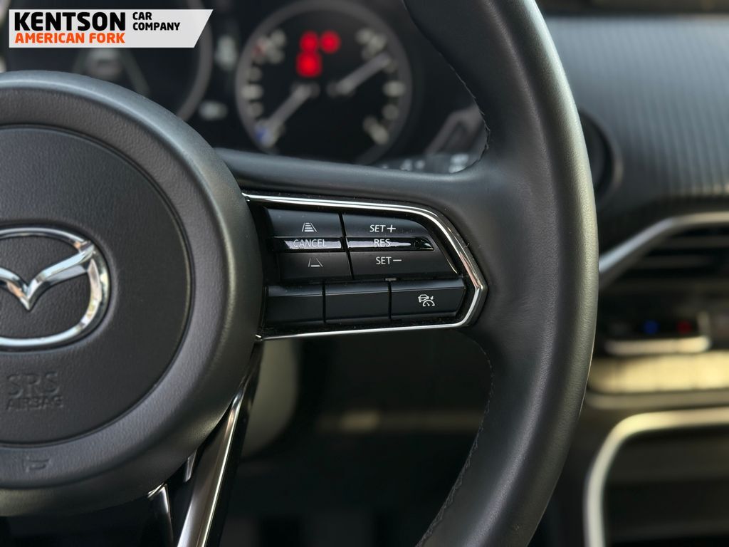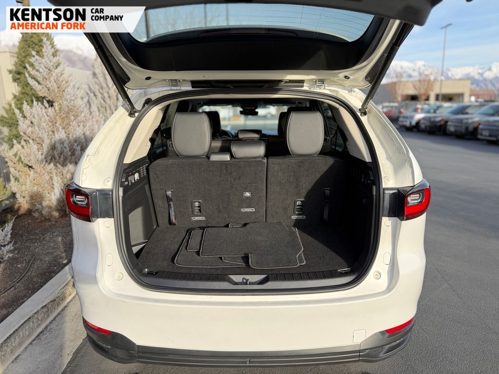 3rd row seats: bench, 4-Wheel Disc Brakes, 8 Speakers, ABS brakes, Air Conditioning, Alloy wheels, AM/FM radio, AppLink/Apple CarPlay and Android Auto, Auto High-beam Headlights, Automatic temperature control, Brake assist, Bumpers: body-color, Compass, Delay-off headlights, Driver door bin, Driver vanity mirror, Dual front impact airbags, Dual front side impact airbags, E911 Automatic Emergency Notification, Electronic Stability Control, Emergency communication system: MAZDA CONNECT, Exterior Parking Camera Rear, Four wheel independent suspension, Front anti-roll bar, Front Bucket Seats, Front Center Armrest w/Storage, Front dual zone A/C, Front reading lights, Fully automatic headlights, Heated door mirrors, Illuminated entry, Infotainment System Voice Command, Knee airbag, Leather Shift Knob, Leather steering wheel, Leatherette Seat Trim, Low tire pressure warning, Mazda Connected Services, Occupant sensing airbag, Outside temperature display, Overhead airbag, Overhead console, Pandora Internet Radio Integration, Panic alarm, Passenger door bin, Passenger vanity mirror, Power door mirrors, Power driver seat, Power Liftgate, Power steering, Power windows, Radio Broadcast Data System Program Information, Radio data system, Radio: AM/FM w/HD/8-Speaker Sound System, Rain sensing wipers, Rear air conditioning, Rear anti-roll bar, Rear reading lights, Rear seat center armrest, Rear window defroster, Rear window wiper, Remote keyless entry, Rhodium White Premium Paint Charge, SMS Text Msg Audio Delivery & Reply, Speed control, Speed-sensing steering, Split folding rear seat, Spoiler, Steering wheel mounted audio controls, Tachometer, Telescoping steering wheel, Tilt steering wheel, Traction control, Trip computer, Turn signal indicator mirrors, Variably intermittent wipers, and Wheels: 19'' x 8.5J Aluminum Alloy.