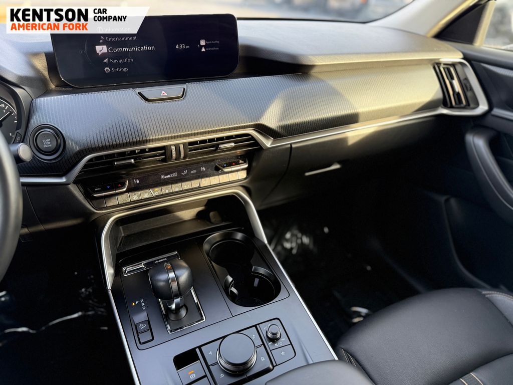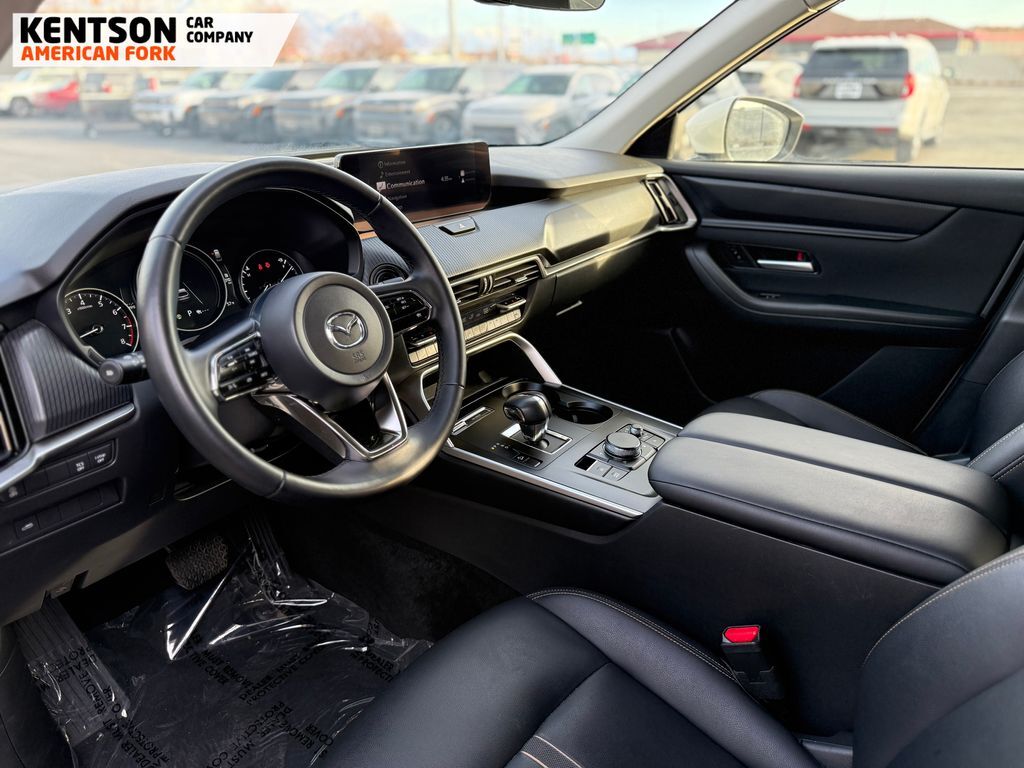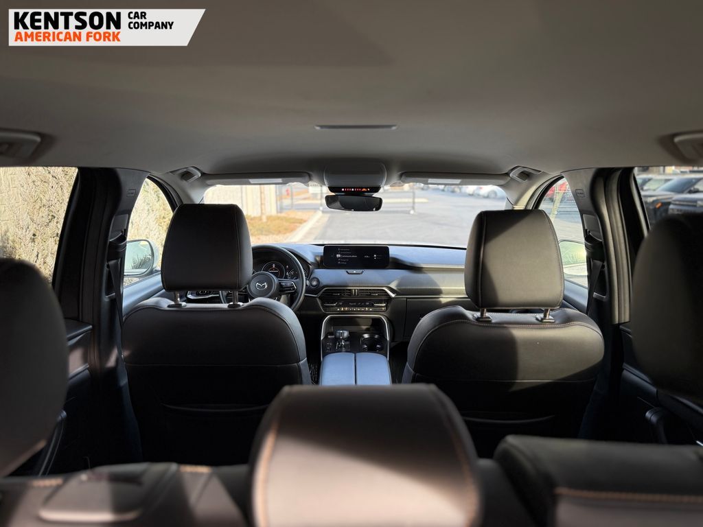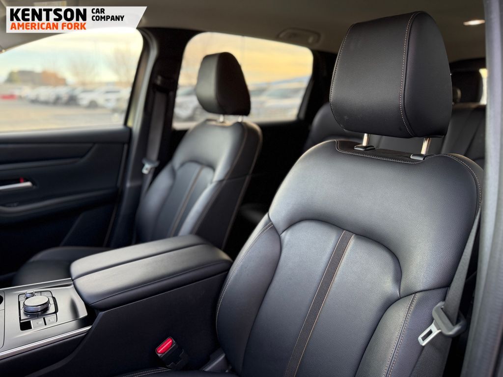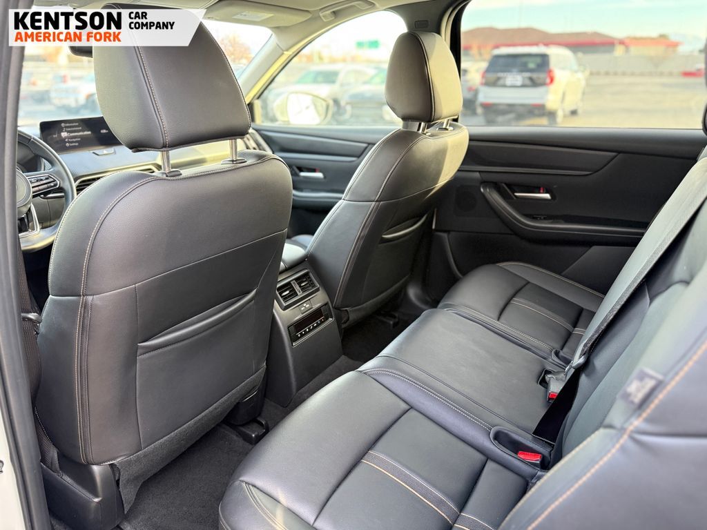 3rd row seats: bench, 4-Wheel Disc Brakes, 8 Speakers, ABS brakes, Air Conditioning, Alloy wheels, AM/FM radio, AppLink/Apple CarPlay and Android Auto, Auto High-beam Headlights, Automatic temperature control, Brake assist, Bumpers: body-color, Compass, Delay-off headlights, Driver door bin, Driver vanity mirror, Dual front impact airbags, Dual front side impact airbags, E911 Automatic Emergency Notification, Electronic Stability Control, Emergency communication system: MAZDA CONNECT, Exterior Parking Camera Rear, Four wheel independent suspension, Front anti-roll bar, Front Bucket Seats, Front Center Armrest w/Storage, Front dual zone A/C, Front reading lights, Fully automatic headlights, Heated door mirrors, Illuminated entry, Infotainment System Voice Command, Knee airbag, Leather Shift Knob, Leather steering wheel, Leatherette Seat Trim, Low tire pressure warning, Mazda Connected Services, Occupant sensing airbag, Outside temperature display, Overhead airbag, Overhead console, Pandora Internet Radio Integration, Panic alarm, Passenger door bin, Passenger vanity mirror, Power door mirrors, Power driver seat, Power Liftgate, Power steering, Power windows, Radio Broadcast Data System Program Information, Radio data system, Radio: AM/FM w/HD/8-Speaker Sound System, Rain sensing wipers, Rear air conditioning, Rear anti-roll bar, Rear reading lights, Rear seat center armrest, Rear window defroster, Rear window wiper, Remote keyless entry, Rhodium White Premium Paint Charge, SMS Text Msg Audio Delivery & Reply, Speed control, Speed-sensing steering, Split folding rear seat, Spoiler, Steering wheel mounted audio controls, Tachometer, Telescoping steering wheel, Tilt steering wheel, Traction control, Trip computer, Turn signal indicator mirrors, Variably intermittent wipers, and Wheels: 19'' x 8.5J Aluminum Alloy.