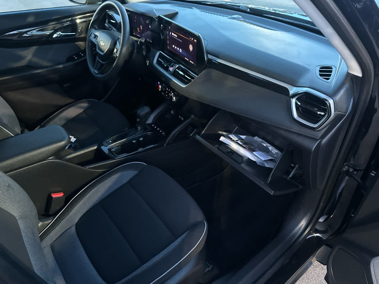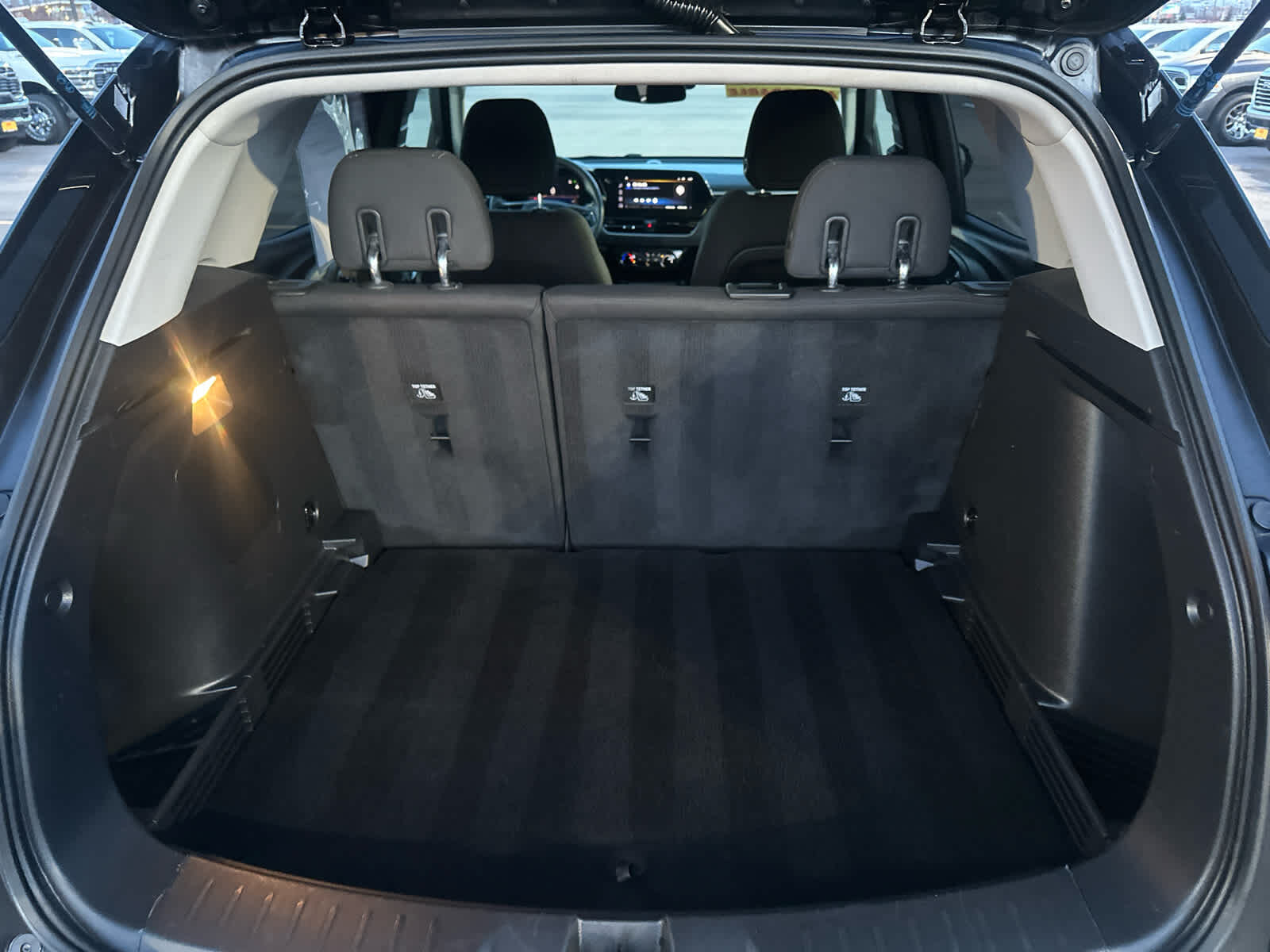 Additional features for compatible phones include: Bluetooth® audio streaming for 2 active devices, voice command pass-through to phone, wireless Apple CarPlay® and wireless Android Auto® capable (STD), (155 hp [115 kW] @ 5600 rpm, 174 lb-ft torque [236 N-m] @ 1600 rpm) (STD), (STD). Safety equipment includes Lane Keeping Assist, Child Safety Locks, 4-Wheel ABS, 4-Wheel Disc Brakes. Chevrolet LT with Mosaic Black Metallic exterior and Jet Black interior features a 3 Cylinder Engine with 155 HP at 5600 RPM*. Serviced here, Non-Smoker vehicle