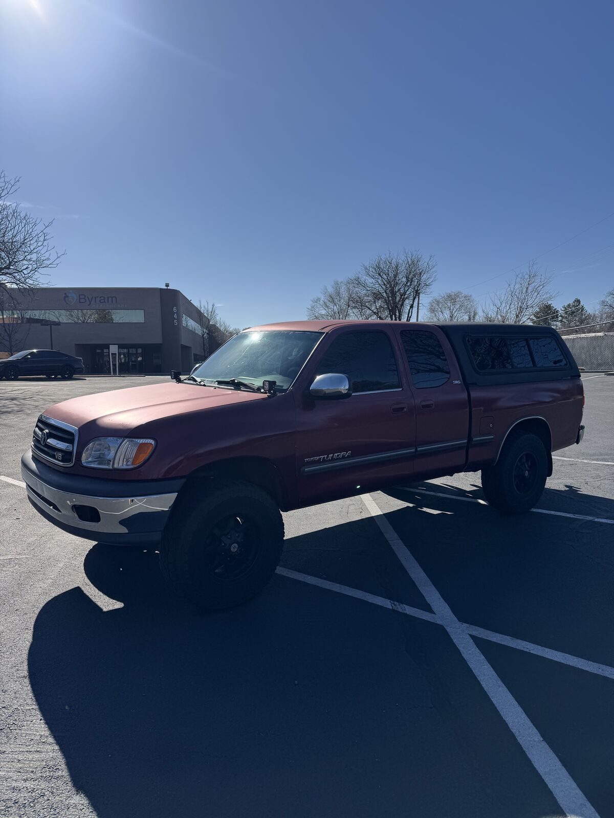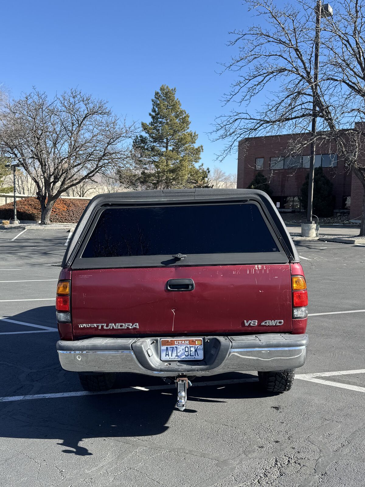 Rhino lined, tinted, carpeted camper shell, key included