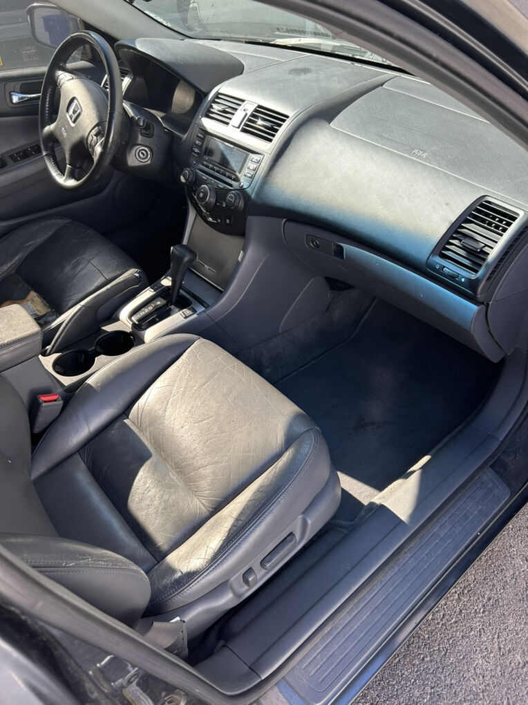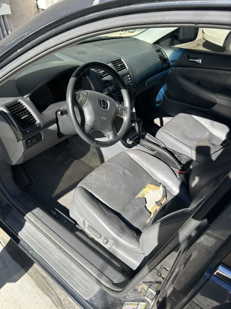 2004 Honda Accord EX with the 3.0L V6 engine. Been a daily freeway driver for the last two years. Car runs great but has a little oil leak from the valve cover, about 1/2 qt every 5000 miles. It has gotten a new battery, tires, and brakes within the last year. Front seats are heated but the driver side seat is missing fabric. Car also has a third party Viper remote starter.