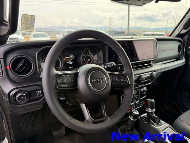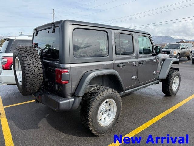 GRANITE CRYSTAL METALLIC CLEARCOAT,ENGINE: 2.0L I4 DOHC DI TURBO W/ESS,BLACK 3-PIECE HARD TOP -inc: Freedom Panel Storage Bag Rear Window Defroster Rear Window Wiper/Washer,GVWR: 5 975 LBS (STD),TIRES: LT285/70R17C BSW OFF-ROAD (STD),PERFORMANCE SUSPENSION (STD),QUICK ORDER PACKAGE 22R RUBICON -inc: Engine: 2.0L I4 DOHC DI Turbo w/ESS Transmission: 8-Speed Automatic (850RE),TRANSMISSION: 8-SPEED AUTOMATIC (850RE) -inc: Adaptive Cruise Control w/Stop Selec-Speed Control,MOPAR ALL-WEATHER FLOOR MATS,WHEELS: 17 X 7.5 MACHINED/PAINTED BLACK (STD),CONVENIENCE GROUP -inc: Heated Steering Wheel Universal Garage Door Opener Heated Front Seats,4.10 REAR AXLE RATIO (STD),BLACK CLOTH LOW-BACK BUCKET SEATS,FRONT LICENSE PLATE BRACKET,Four Wheel Drive,Locking/Limited Slip Differential,Locking/Limited Slip Differential,Tow Hitch,Power Steering,ABS,4-Wheel Disc Brakes,Brake Assist,Locking/Limited Slip Differential,Brake Actuated Limited Slip Differential,Aluminum Wheels,Tires - Front All-Terrain,Tires - Rear All-Terrain,Conventional Spare Tire,Tow Hooks,Tow Hooks,Heated Mirrors,Power Mirror(s),Privacy Glass,Intermittent Wipers,Variable Speed Intermittent Wipers,Rollover Protection Bars,Convertible Soft Top,Power Door Locks,Daytime Running Lights,Automatic Headlights,LED Headlights,Fog Lamps,AM/FM Stereo,Satellite Radio,Bluetooth Connection,Requires Subscription,MP3 Capability,Steering Wheel Audio Controls,Auxiliary Audio Input,Bluetooth Connection,Driver Adjustable Lumbar,Driver Adjustable Lumbar,Pass-Through Rear Seat,Rear Bench Seat,Adjustable Steering Wheel,Trip Computer,Power Windows,Keyless Entry,Power Door Locks,Keyless Start,Keyless Entry,Power Door Locks,Cruise Control,Adaptive Cruise Control,Climate Control,Multi-Zone A/C,A/C,Cloth Seats,Bucket Seats,Driver Vanity Mirror,Passenger Vanity Mirror,Driver Illuminated Vanity Mirror,Passenger Illuminated Visor Mirror,Floor Mats,Smart Device Integration,Smart Device Integration,WiFi Hotspot,Smart Device Integration,Power Windows,Power Door Locks,Trip Computer,Security System,Immobilizer,Traction Control,Stability Control,Traction Control,Front Side Air Bag,Telematics,Requires Subscription,Front Collision Mitigation,Tire Pressure Monitor,Driver Air Bag,Passenger Air Bag,Front Head Air Bag,Rear Head Air Bag,Passenger Air Bag Sensor,Child Safety Locks,Back-Up Camera