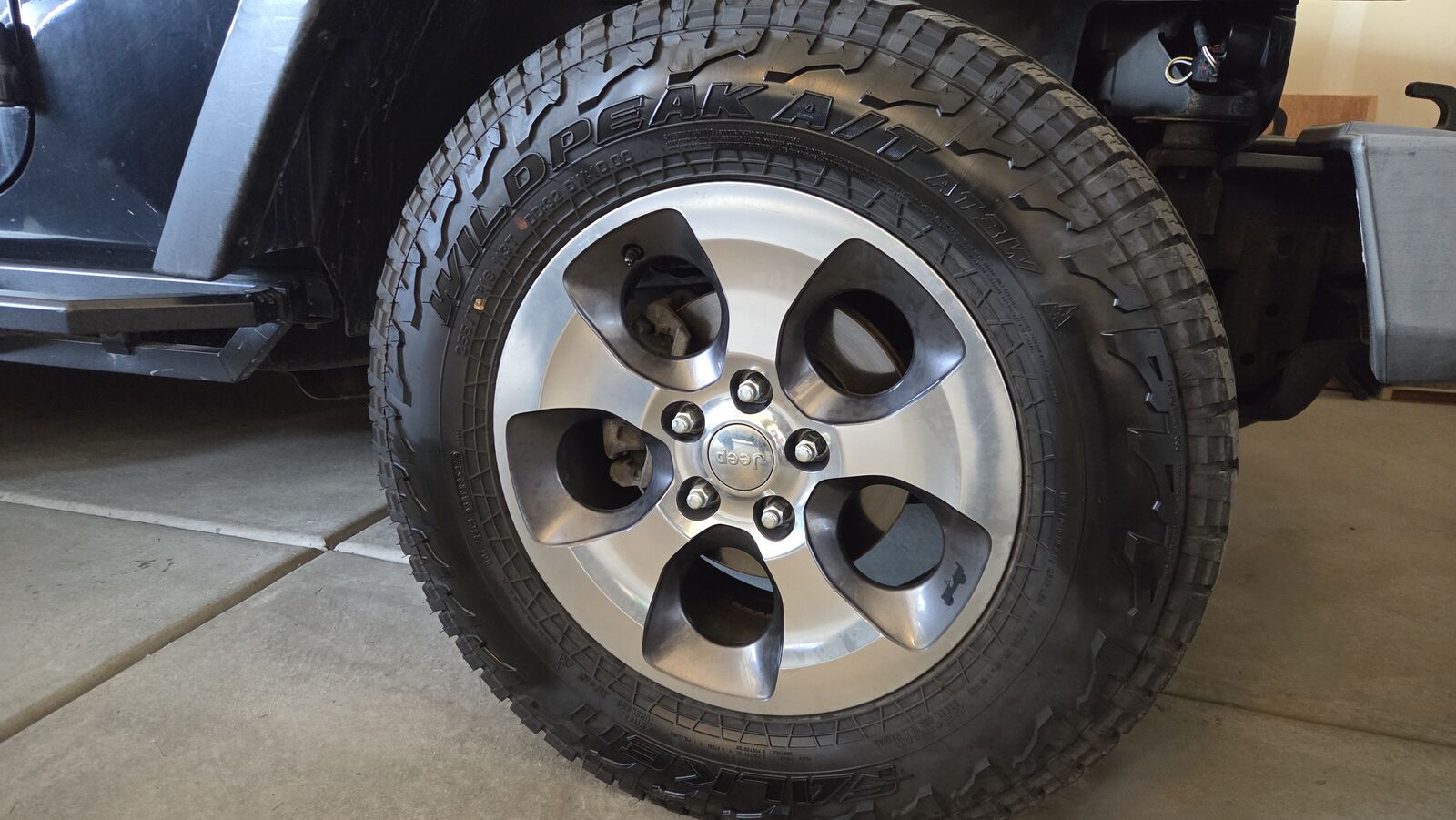 The Jeep runs well, and has had a recent battery replacement and starter replacement. One of the tires has a faulty TPMS sensor, causing the tire pressure light to come on regularly even though the pressure is good in the tire.