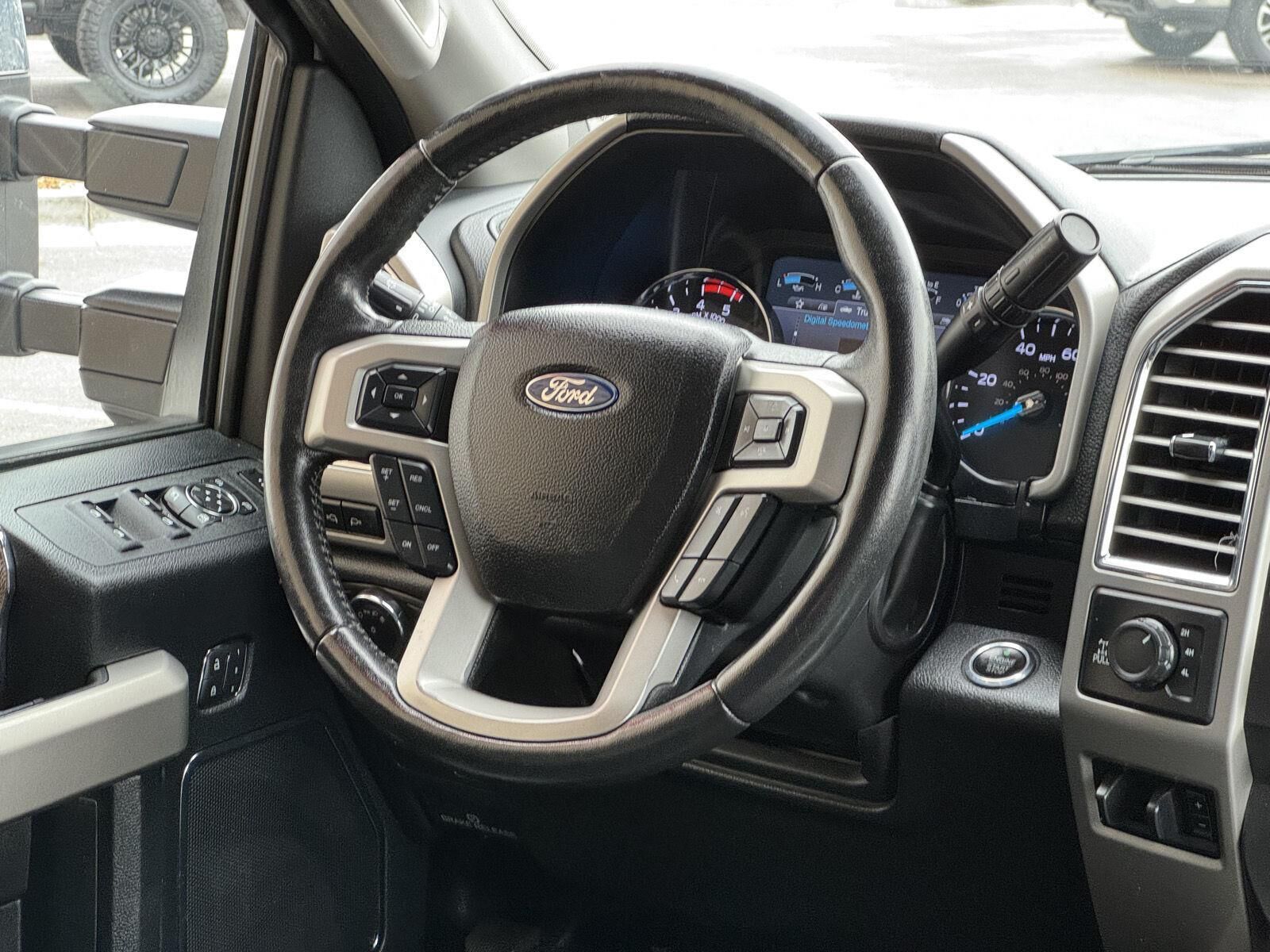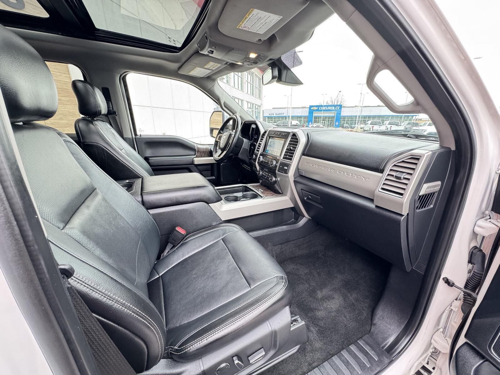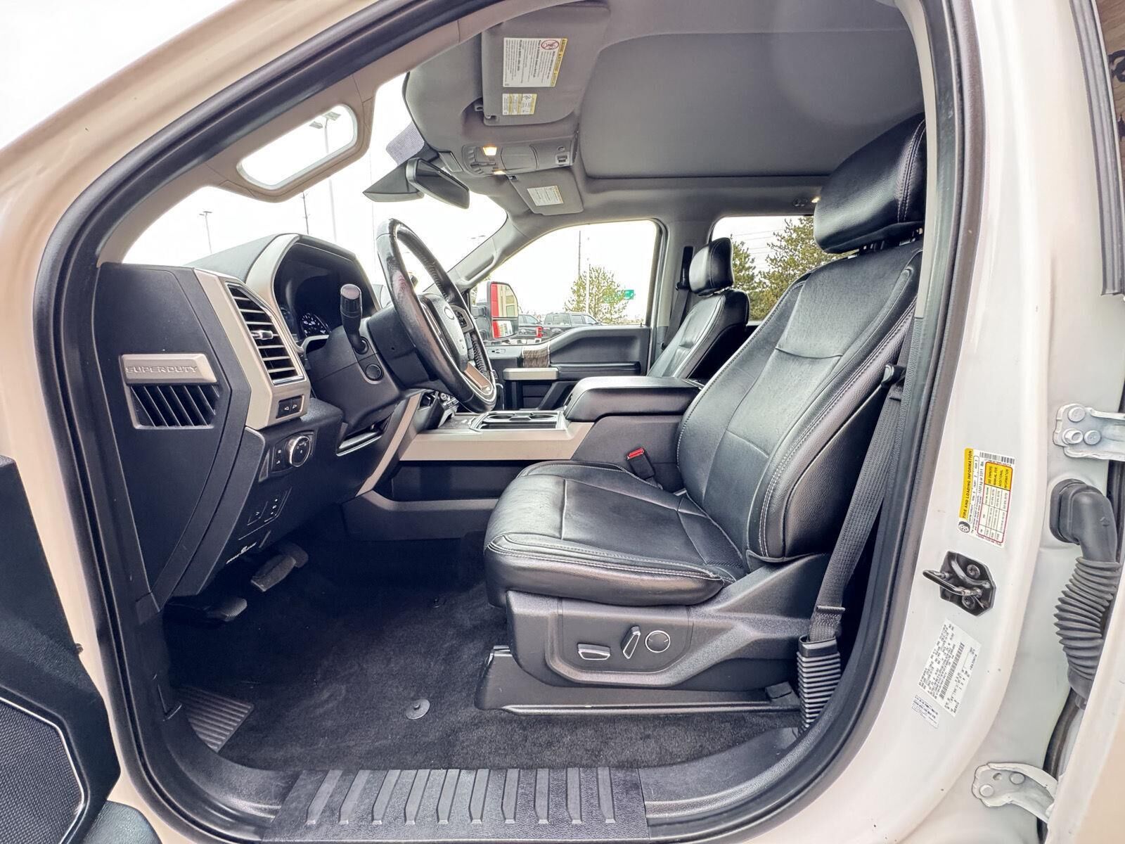 Chrome Package ($1,125 value)FX4 Off-Road Package ($295 value)Lariat Ultimate Package ($4,280 value)Order Code 618AFront Leather Seating Surfaces 40/console/40Premium Sony Audio with single-CD/MP3 PlayerSkid Plate Package ($100 value)Includes transfer case and fuel tank skid plates.Tailgate Step ($375 value)Includes Tailgate Assist with step and flip up grab bar.Engine Block Heater ($90 value)Standard only in AK, CO, IA, ID, ME, MI, MN, MT, ND, NH, NY, SD, VT, WI, and WY states.Bedliner - Tough Bed Spray-In ($495 value)Includes tailgate guard, black box bed tie down hooks, and black bed attachment bolts.White Platinum Tri-Coat Metallic Paint ($595 value)5th Wheel/Gooseneck Hitch Prep Package ($370 value)Includes one frame under-bed cross member, five pickup bed attachment points with plugs, and one integrated 7-pin connector on drivers side pick-up bed wall.Remote Vehicle Start ($195 value)3.55 Electronic Locking Axle Ratio ($390 value)Rapid-Heat Supplemental Cab Heater ($250 value)Standard in AK, CO, IA, ID, ME, MI, MN, MT, ND, NH, NY, SD, VT, WI and WY with 6.7L Power Stroke Diesel engine. Optional in all other states with 6.7L Power Stroke Diesel engine.20 In. Chrome Aluminum Wheels ($1,140 value)Ultimate Trailer Tow Camera System ($710 value)Includes rear view camera, 360 degree camera system, rear CHMSL camera, trailer reverse guidance and LED center high-mounted stop lamp (display in center stack screen).Dual Extra Heavy Duty Alternator ($115 value)Includes dual alternators that produce a combined 377 amps.Blind Spot Information System w/Cross-Traffic Alert ($540 value)Includes BLIS (Blind Spot Information System) with cross traffic alert, and Trailer Tow (BLIS sensor in taillamp).LED Box Lighting ($60 value)Includes LED center high mounted stop lamp (CHMSL).Twin Panel Panoramic Moonroof ($1,295 value)Includes twin panel power panoramic moonroof with map lights and moonroof switches.Voice-Activated Navigation System ($570 value)Includes voice activated HD navigation system with SiriusXM Traffic and Travel Link with 5 year pre-paid subscription.