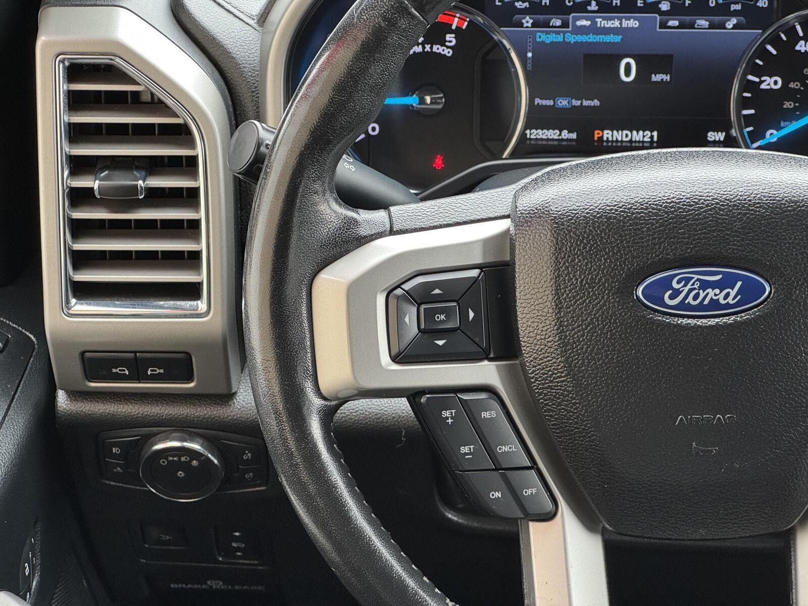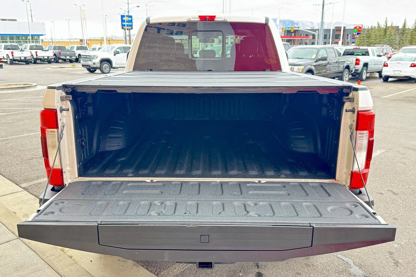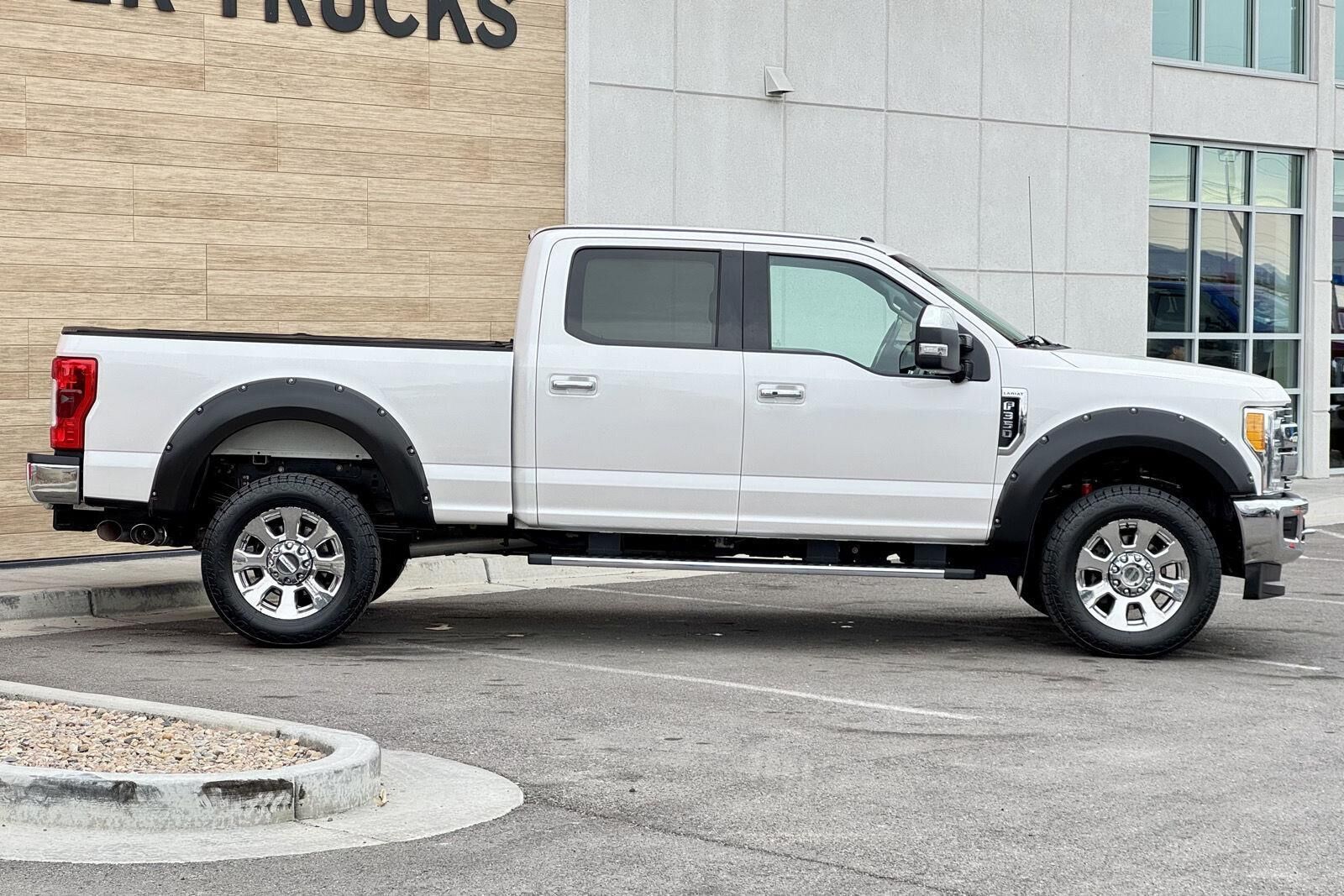 Chrome Package ($1,125 value)FX4 Off-Road Package ($295 value)Lariat Ultimate Package ($4,280 value)Order Code 618AFront Leather Seating Surfaces 40/console/40Premium Sony Audio with single-CD/MP3 PlayerSkid Plate Package ($100 value)Includes transfer case and fuel tank skid plates.Tailgate Step ($375 value)Includes Tailgate Assist with step and flip up grab bar.Engine Block Heater ($90 value)Standard only in AK, CO, IA, ID, ME, MI, MN, MT, ND, NH, NY, SD, VT, WI, and WY states.Bedliner - Tough Bed Spray-In ($495 value)Includes tailgate guard, black box bed tie down hooks, and black bed attachment bolts.White Platinum Tri-Coat Metallic Paint ($595 value)5th Wheel/Gooseneck Hitch Prep Package ($370 value)Includes one frame under-bed cross member, five pickup bed attachment points with plugs, and one integrated 7-pin connector on drivers side pick-up bed wall.Remote Vehicle Start ($195 value)3.55 Electronic Locking Axle Ratio ($390 value)Rapid-Heat Supplemental Cab Heater ($250 value)Standard in AK, CO, IA, ID, ME, MI, MN, MT, ND, NH, NY, SD, VT, WI and WY with 6.7L Power Stroke Diesel engine. Optional in all other states with 6.7L Power Stroke Diesel engine.20 In. Chrome Aluminum Wheels ($1,140 value)Ultimate Trailer Tow Camera System ($710 value)Includes rear view camera, 360 degree camera system, rear CHMSL camera, trailer reverse guidance and LED center high-mounted stop lamp (display in center stack screen).Dual Extra Heavy Duty Alternator ($115 value)Includes dual alternators that produce a combined 377 amps.Blind Spot Information System w/Cross-Traffic Alert ($540 value)Includes BLIS (Blind Spot Information System) with cross traffic alert, and Trailer Tow (BLIS sensor in taillamp).LED Box Lighting ($60 value)Includes LED center high mounted stop lamp (CHMSL).Twin Panel Panoramic Moonroof ($1,295 value)Includes twin panel power panoramic moonroof with map lights and moonroof switches.Voice-Activated Navigation System ($570 value)Includes voice activated HD navigation system with SiriusXM Traffic and Travel Link with 5 year pre-paid subscription.
